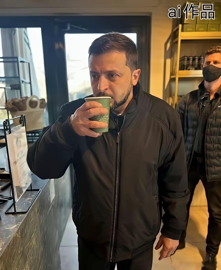 🔻看到内塔尼亚胡买咖啡。🔻网友弄了一个泽连斯基喝咖啡。🔻感觉更逼真!