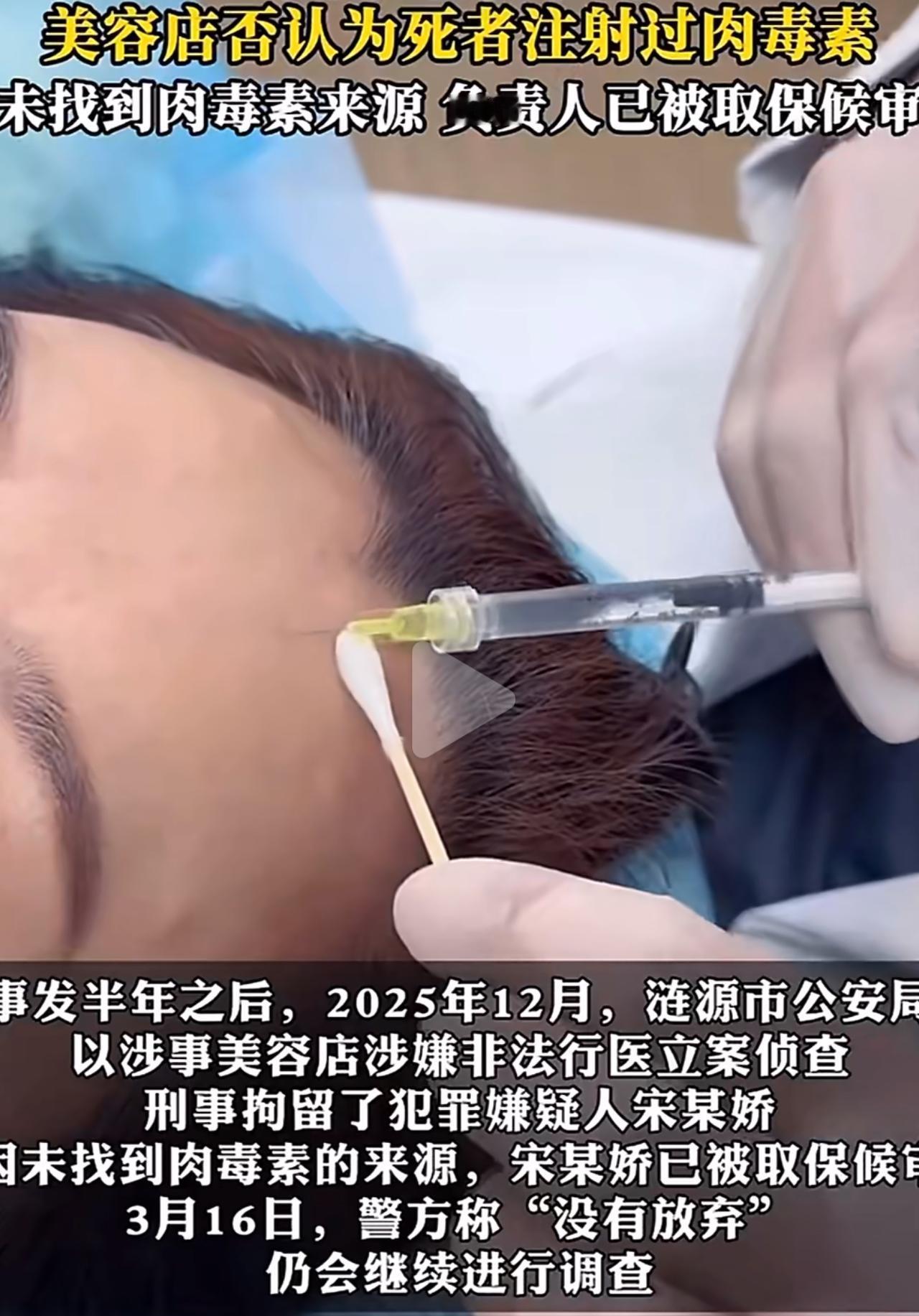 34岁的张香玲,在当地一家美容店花4900块做了脸部项目。做完第二天就不对劲,额头肿、头晕眼花,她还听店家的话吃消炎药、冰敷,以为只是正常反应。 可情况越来越糟,后来说话含糊、咽东西都费劲,赶紧送去医院,最后在湘雅医院没能救回来。尸检结果清清楚楚:她体内检出高浓度A型肉毒素,就是中毒导致多器官衰竭走的。 更让人憋屈的是,这家店根本没有医疗资质,操作的人也不是医生,纯纯非法行医。对方收了钱,却死活不承认打了肉毒素,只说是普通水光针。 关键的药品来源找不到,证据链断了,对方现在只是取保候审,甚至还联系不上。好好一条人命,到现在还没个公道。 肉毒素是严控的处方药,不是随便一家美容店就能打的。很多人为了省事、图便宜,往无证店里跑,可这真的是拿命在冒险。 爱美从来没错,但千万别把自己交给不正规的地方。希望警方能早点查到真相,给逝者和家人一个交代,也真的提醒所有人:美容有风险,选择需谨慎!肉毒素 美容店套路 肉毒素中毒