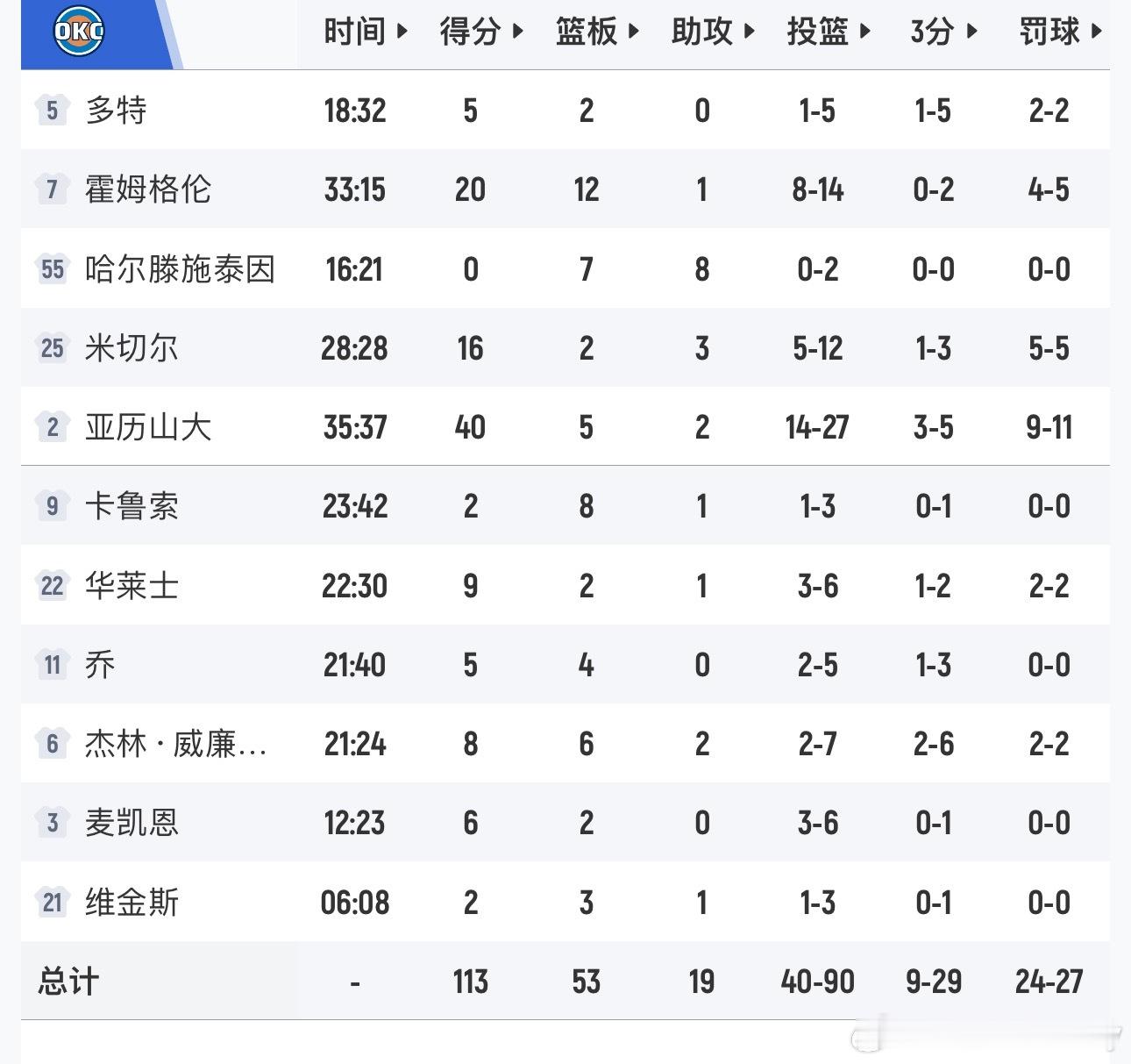 雷霆113-108战胜魔术,豪取9连胜!