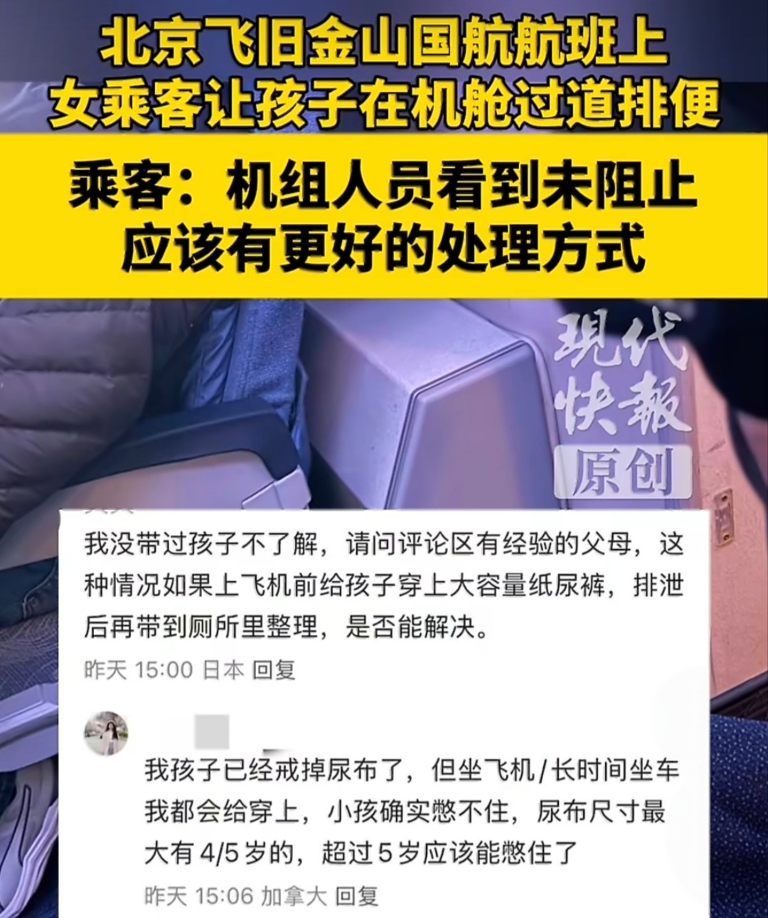 一乘客被曝让孩子在飞机过道排便理解带娃出行不易,但在飞机过道排便实在不妥。密闭机舱里,异味会让所有乘客难受,突发颠簸还可能带来危险。孩子小不是借口,家长可求助乘务员、使用卫生间,或用便携装备妥善处理。真正的爱孩子,是教会他尊重公共空间、顾及他人感受,别让一时方便,变成所有人的尴尬与不适。