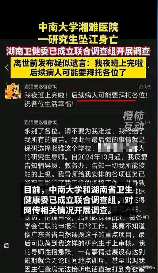 这哪是光鲜亮丽、人人羡慕的研究生生活,简直是太上老君的炼丹炉,每天都要架在火上烧啊! 看了孙同学的遗书,字字泣血。 带教老师和导师布置的双重任务,又要学习,又要工作,又要听老师训导,完成和学习有关和无关的杂事,忙得像个陀螺,到最后成了无法兼顾的现状,累啊! 烧出来就是人才,毕竟还没就业就身经百战,可女孩熬过了高考,熬过了保研,没熬过最后一道工序。 女孩遗书里提到一个事,在查房时接到导师电话,让“滚过去处理事情”,真的用的是滚这个字吗?如果真是这样,连一点尊重都没有,难道是导师和研究生之间关系的真实状态? 如果真是这样,导师的权力是不是有点太大?为什么能对一个学生颐指气使,公的私的都一股脑儿让学生干,这个问题应该好好查查,到底问题在哪,导师和学生哪个有问题。 就像女孩爸爸说的那样,唯一的诉求是彻查女儿自杀原因,推动制度改革,保护其他学生免受类似悲剧。