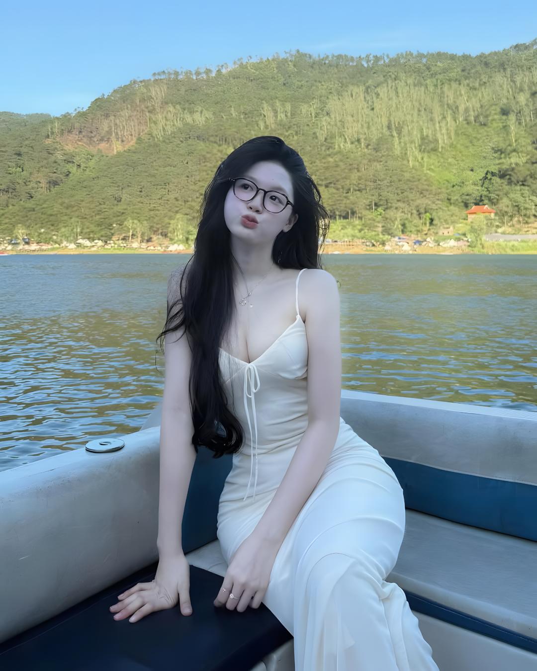 春日乘船游,白裙飘飘,绿树环绕,美不胜收!