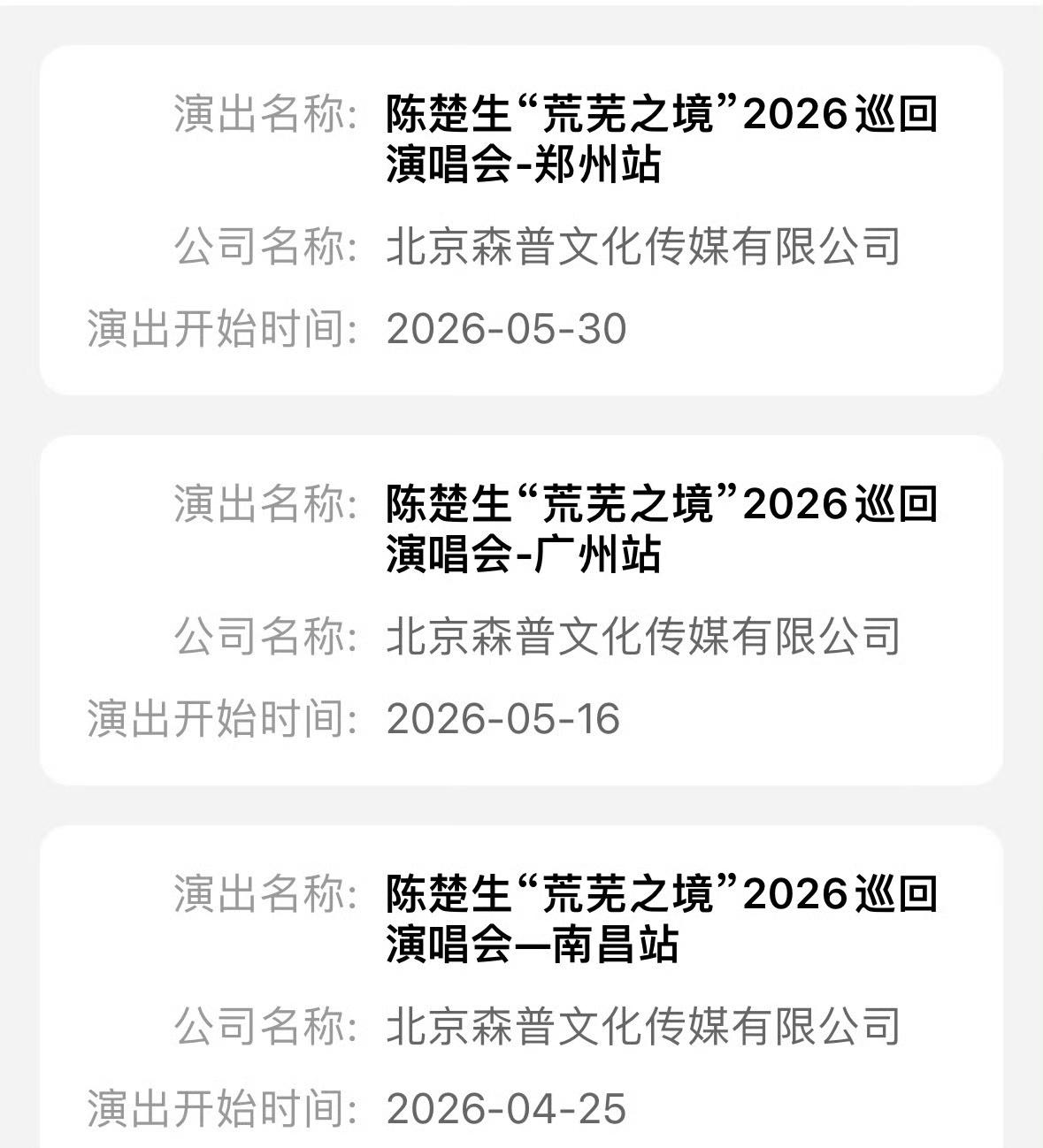 陈楚生荒芜之境演唱会又传好消息!继上海,南昌,广州文旅抢先替陈楚生官宣演唱会之后
