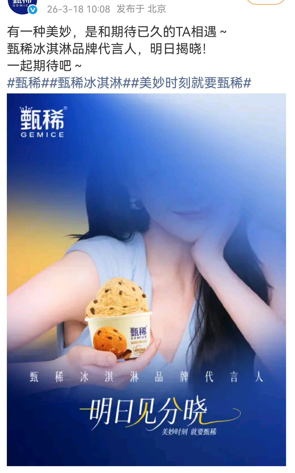 迪丽热巴甄稀冰淇淋品牌代言人预热,夏天快要到了,可以吃冰淇淋了