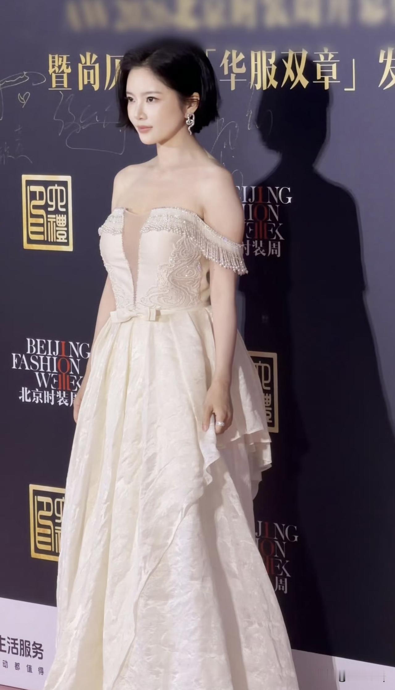 杜淳老婆王灿参加线下活动,衣着一字肩抹胸礼服,上面看着挺光鲜亮丽,没想到裙摆里面