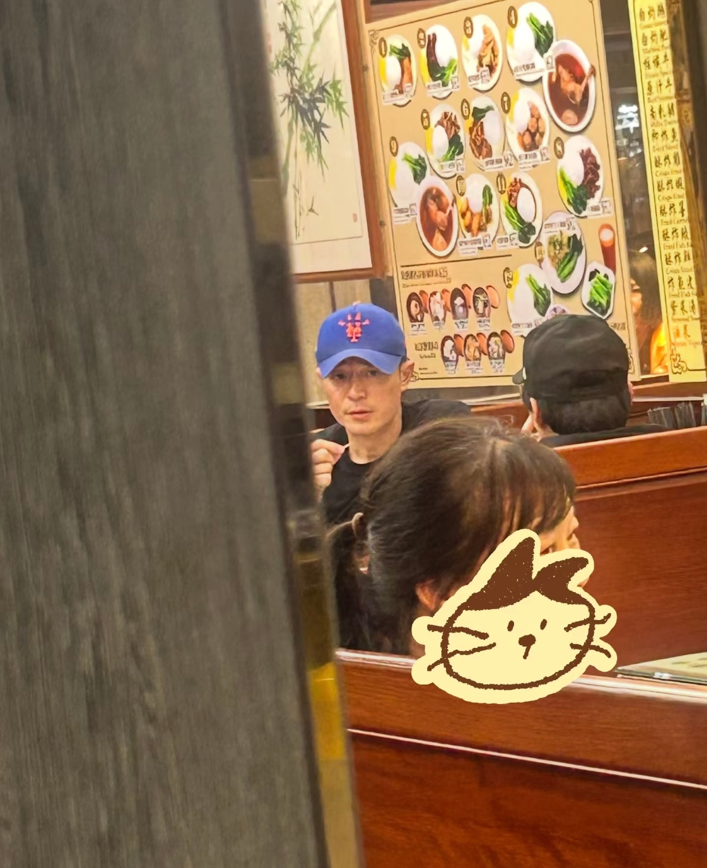 近日,霍建华现身香港,与友人一起吃饭的画面。霍建华戴着棒球帽,坐在那里谈笑风