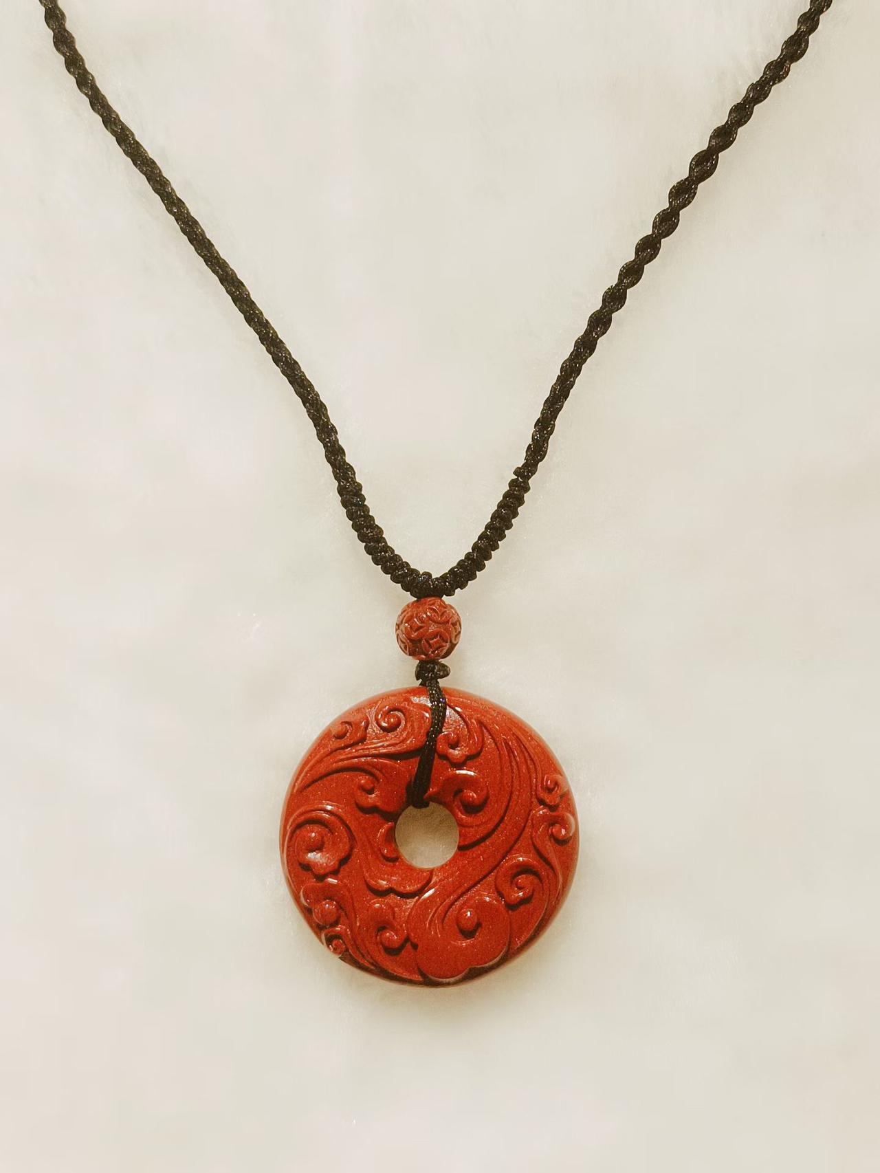 古朴风韵的红色玉坠,搭配黑色绳结,尽显东方韵味。