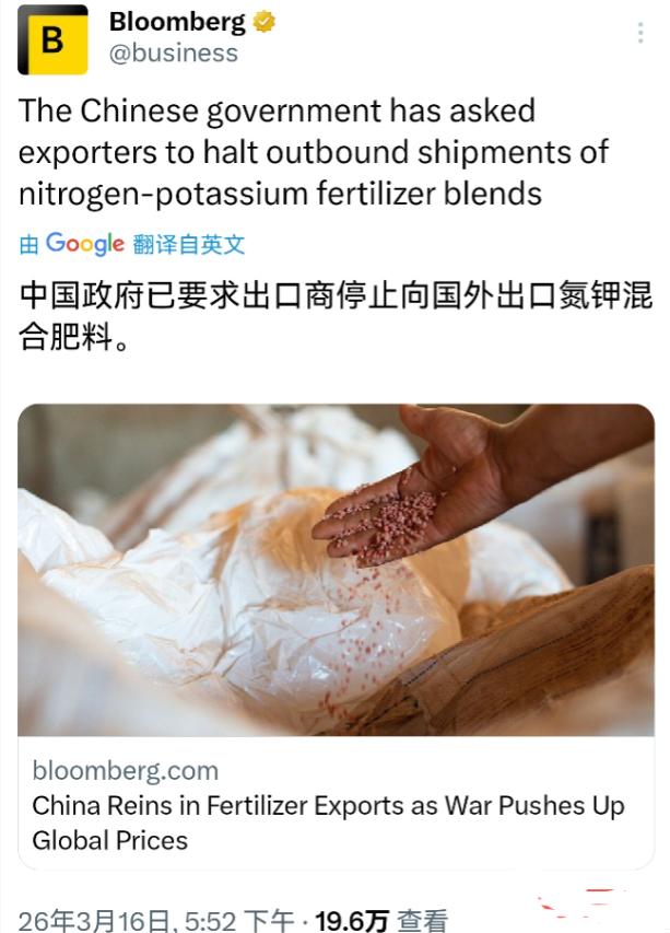 开始了,中国禁止化肥出口,先保国内粮食。而现在最担心出现粮荒的国家是谁呢?是印度! 可能有人会疑惑,全球那么多国家,为啥偏偏是印度最先慌神?其实道理很简单,印度看似是个农业大国,人口多、耕地也不少,但它的农业底子,说白了就是外强中干,全靠化肥撑着,而它自己又造不出足够的化肥,大部分都得靠进口。 咱们先说说中国禁止化肥出口这事儿,没什么复杂的道道,核心就一个:春耕到了,咱们得先保证自己国内的粮食生产。中国有14亿人要吃饭,粮食安全是底线,化肥就是粮食的“营养餐”,没有足够的化肥,地里的收成就得打折扣,所以优先保国内,限制出口,这是天经地义的事,换哪个国家都会这么做。 可这事儿放到印度身上,就直接戳中了它的死穴。印度每年要用掉3500万吨化肥,但自己家的工厂只能生产2500万吨,剩下的1000万吨缺口,全得靠从国外进口。以前的时候,印度还能从中国、中东那边进口,勉强能补上缺口,可现在偏偏赶上了麻烦。 最近中东那边不太平,霍尔木兹海峡被堵住了,这条海峡可是印度进口天然气的命脉。大家可能不知道,印度造化肥,走的是天然气路线,简单说就是靠烧天然气来生产尿素,而它的天然气,大部分都得从波斯湾那边进口,海峡一堵,天然气运不进来,国内的化肥厂就成了无米之炊。 现在印度的化肥厂,好多都已经停工或者减产了,供气量被强行降到了平时的70%,开工率连六成不到。本来就不够用的化肥,现在更是雪上加霜,库存告急,按照目前的消耗速度,撑死也就只能用到3月底,可偏偏这时候,正是印度恒河平原春耕的关键期,冬小麦要追肥,棉花要铺底肥,少了化肥,地里的庄稼根本长不好。 更有意思的是,印度这困境,纯属自己选的。二十年前,为了赶“环保潮流”,打造所谓的环保形象,印度放弃了煤炭制肥的路线,一门心思搞天然气制肥。当时觉得这路线省事、成本低,可它忘了,天然气依赖进口,一旦国际局势有变,供应链就会断档,现在可不就栽跟头了。 反观咱们中国,就踏实多了。咱们造化肥走的是煤炭路线,依托国内丰富的煤炭资源,从开采到生产,全产业链都在自己手里,不管外面怎么乱,咱们的化肥厂都能正常运转,完全不用看别人的脸色。这也是咱们有底气限制出口的原因,自家的需求能满足,才有多余的考虑出口的事。 印度也不是没尝试过找别人帮忙,可一圈问下来,没人能真正帮上忙。俄罗斯虽然能出口化肥,但红海、黑海的航线也受影响,运不过来,而且俄罗斯自己也有压力,根本顾不上印度。美国倒是有富余的化肥,可偏偏要附加一堆政治条件,让印度站队,还要强制买美国的农机、种子,印度根本不愿接受,也不敢接受。 没办法,印度只能转头来求中国,希望咱们能放宽化肥出口限制,甚至用“紧急求援”的口气造势,连外媒都帮着炒作,想给咱们施压。可咱们的回应很干脆,让他们找主管部门咨询,说白了,就是咱们的化肥出口,得先保自己,没有多余的量去填印度的大缺口。 可能有人会觉得印度可怜,可仔细想想,这都是它自己的问题。这些年,印度一边喊着要“化肥自主”,一边又不重视产业升级,不搞技术研发,反而一门心思在外交上耍小聪明,现在遇到麻烦了,才想起低头求人。而且印度的耕地,经过这么多年的过度消耗,土壤肥力早就透支了,没有化肥,几乎就是颗粒无收,这也是它最慌的核心原因。 印度有58%的人口靠农业谋生,这些人的收入本来就低,要是化肥断供,庄稼减产,粮价肯定会暴涨。对城里人选来说,粮价涨一点可能只是多花点钱,可对农村的穷人来说,这直接关系到能不能吃饱饭,能不能维持生计。一旦真的出现粮荒,不仅老百姓的日子过不下去,莫迪政府的执政根基也会动摇,毕竟农民是他的重要票仓。 说句实在的,印度现在的处境,就是典型的“平时不努力,临时抱佛脚”。自己放弃了自主可控的路线,把农业命脉绑在别人身上,现在遇到危机,慌得手足无措,也就在情理之中了。 中国禁止化肥出口,本质上就是守住自己的粮食安全底线,这没什么可指责的。至于印度的困境,说到底,还是得靠它自己解决,毕竟,没有哪个国家会为了别人的需求,牺牲自己的底线。更何况,这一切的因果,都是印度自己当初的选择造成的。