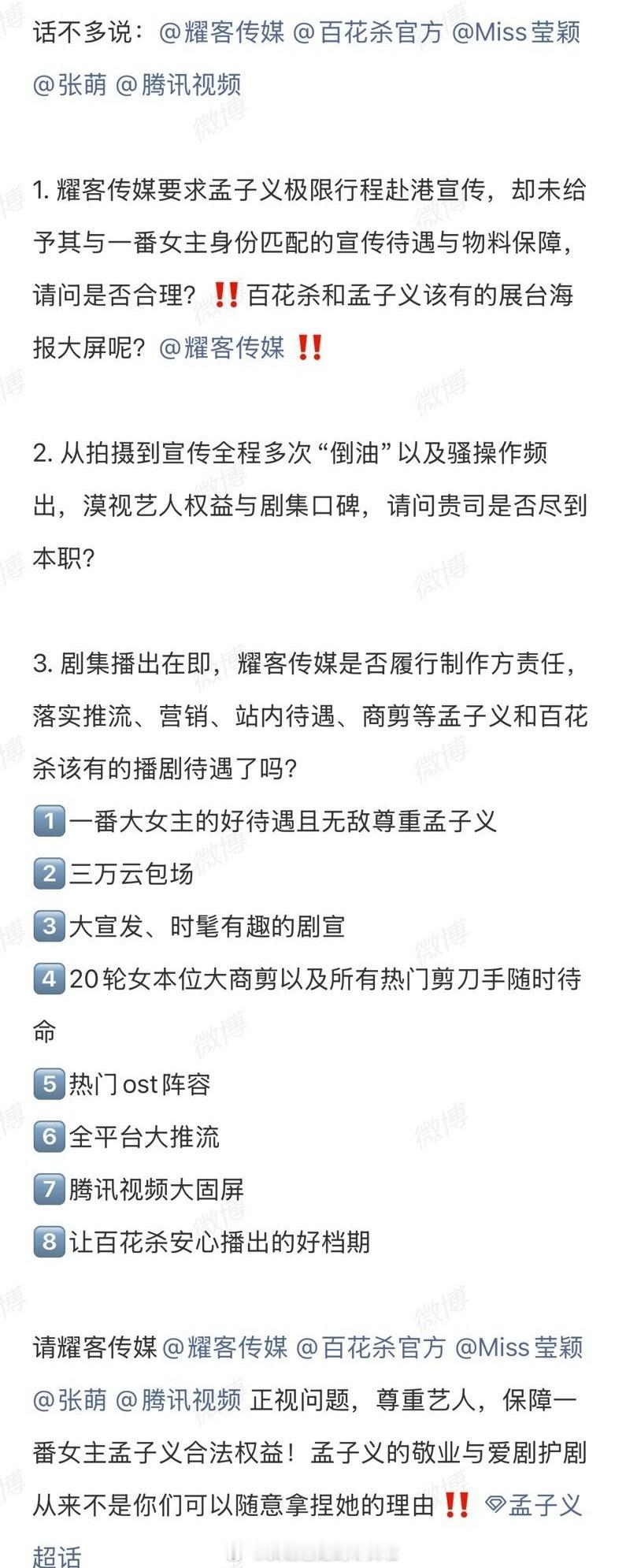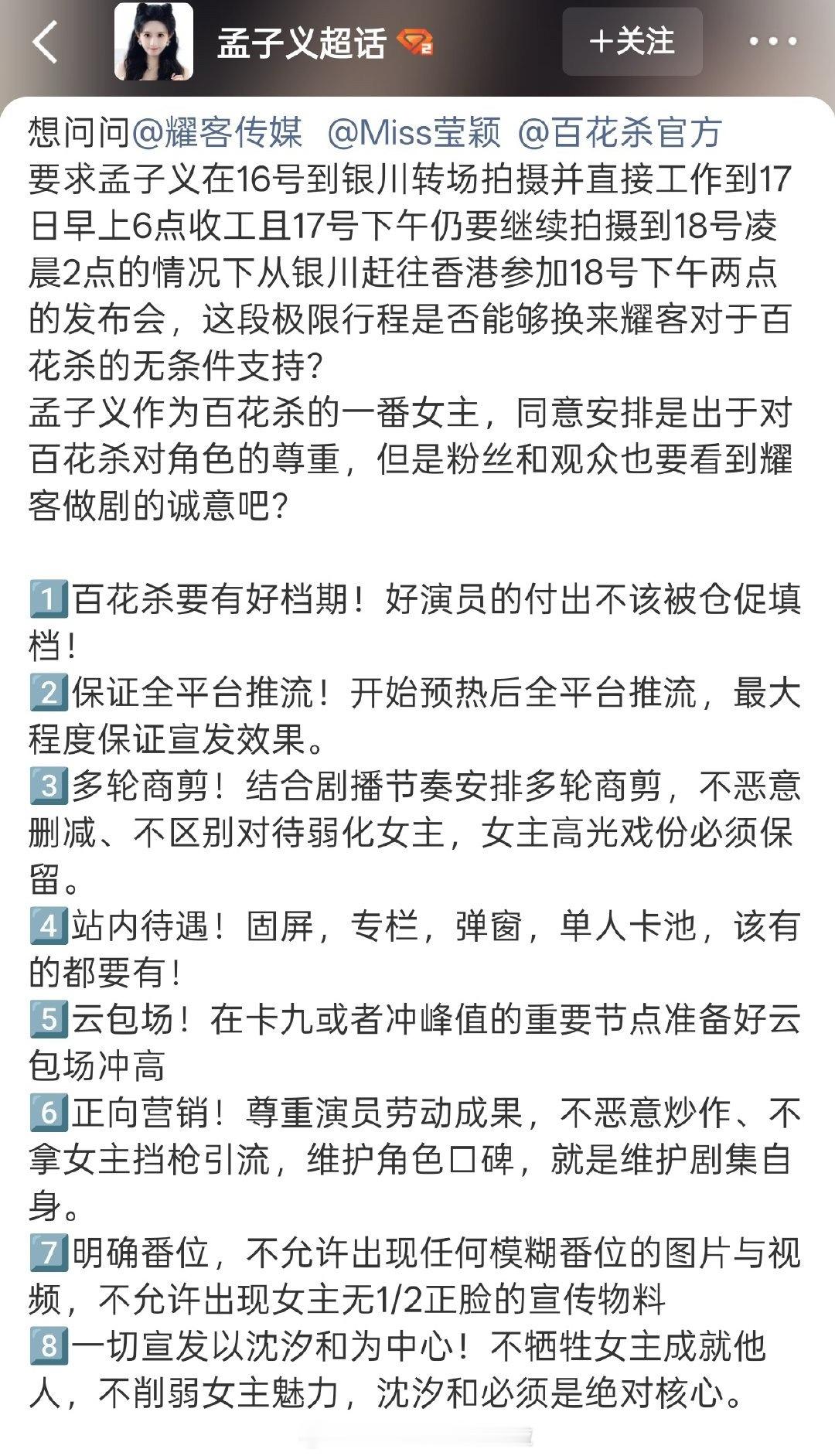 因为之前耀客在香港的展台没有百花杀,孟子义粉丝维权要求公司加大宣传,给百花杀顶级待遇:好档期、全平台推流、站内待遇、冲峰值的时候公司准备云包场