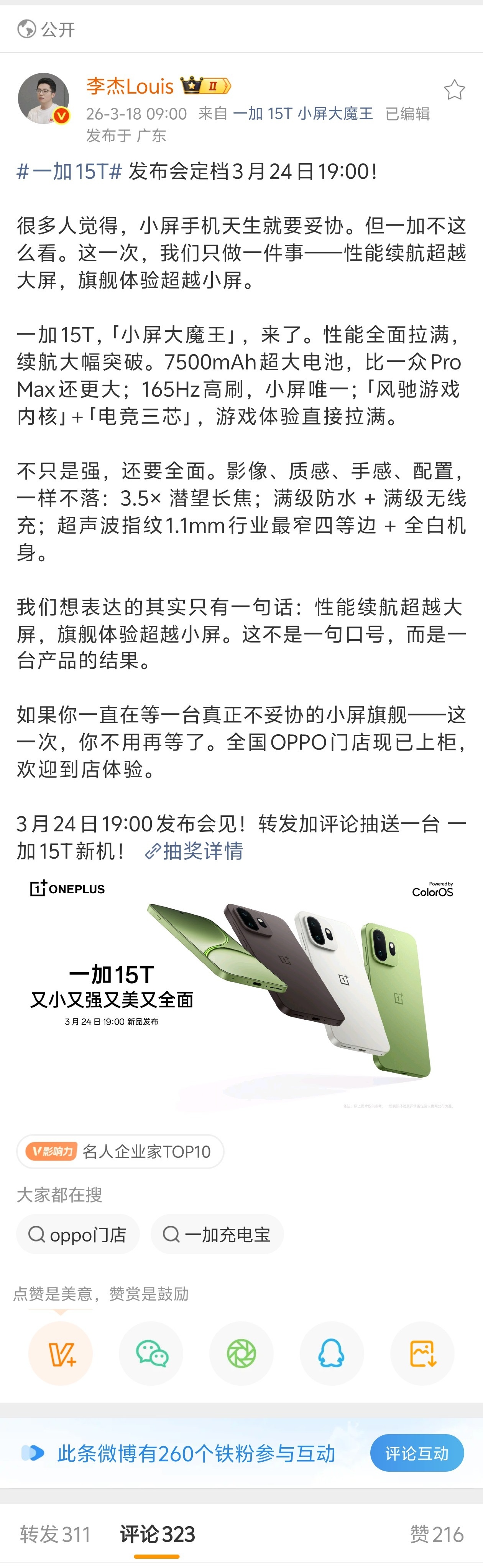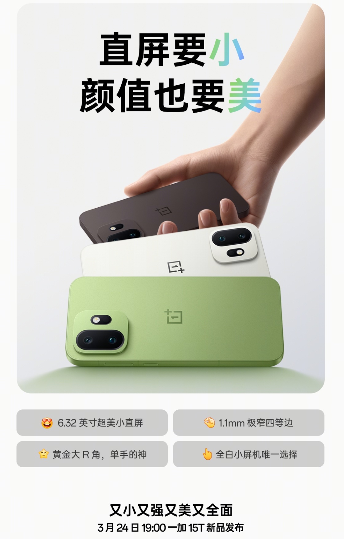 等我狠狠测一下续航,验证一下性能,探究一下手感,看看一加15T的实力,『又小又强又美又全面』真的可能么?3月24日19:00来见证一下!