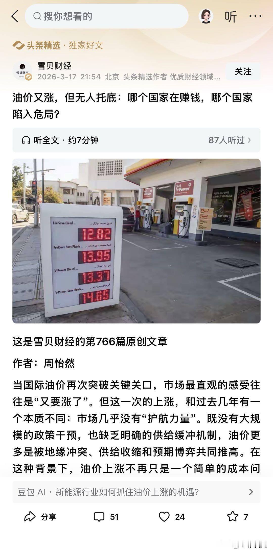 油价暴涨,这次没人“兜底”,谁在笑?谁在哭?一张清单告诉你输赢全貌 国际油价冲破关键关口,和以往不一样的是:这次完全没护航力量! 没有政策救市、没有供给缓冲,全靠地缘冲突、减产减产推着涨,普通人、企业、国家处境天差地别! 为啥涨这么凶?OPEC+执意减产,美国页岩油也不增产稳价。 再加上地缘冲突搅局,全球原油供不应求,油价想不涨都难。 全球经济不算旺,但亚洲刚需撑着,更是给涨价添了火。 这波涨价彻底分出输赢:中东、俄罗斯等产油国赚得盆满钵满,财政大幅增收。 中、欧、日韩等进口国成本飙升,通胀压力陡增。 化工、运输企业利润被压缩,老百姓加油、买菜成本变高;只有石油开采、设备企业坐收红利。 头疼的是,没了调节机制,后续油价波动只会更大,短期降不下来,咱们只能被动适应。