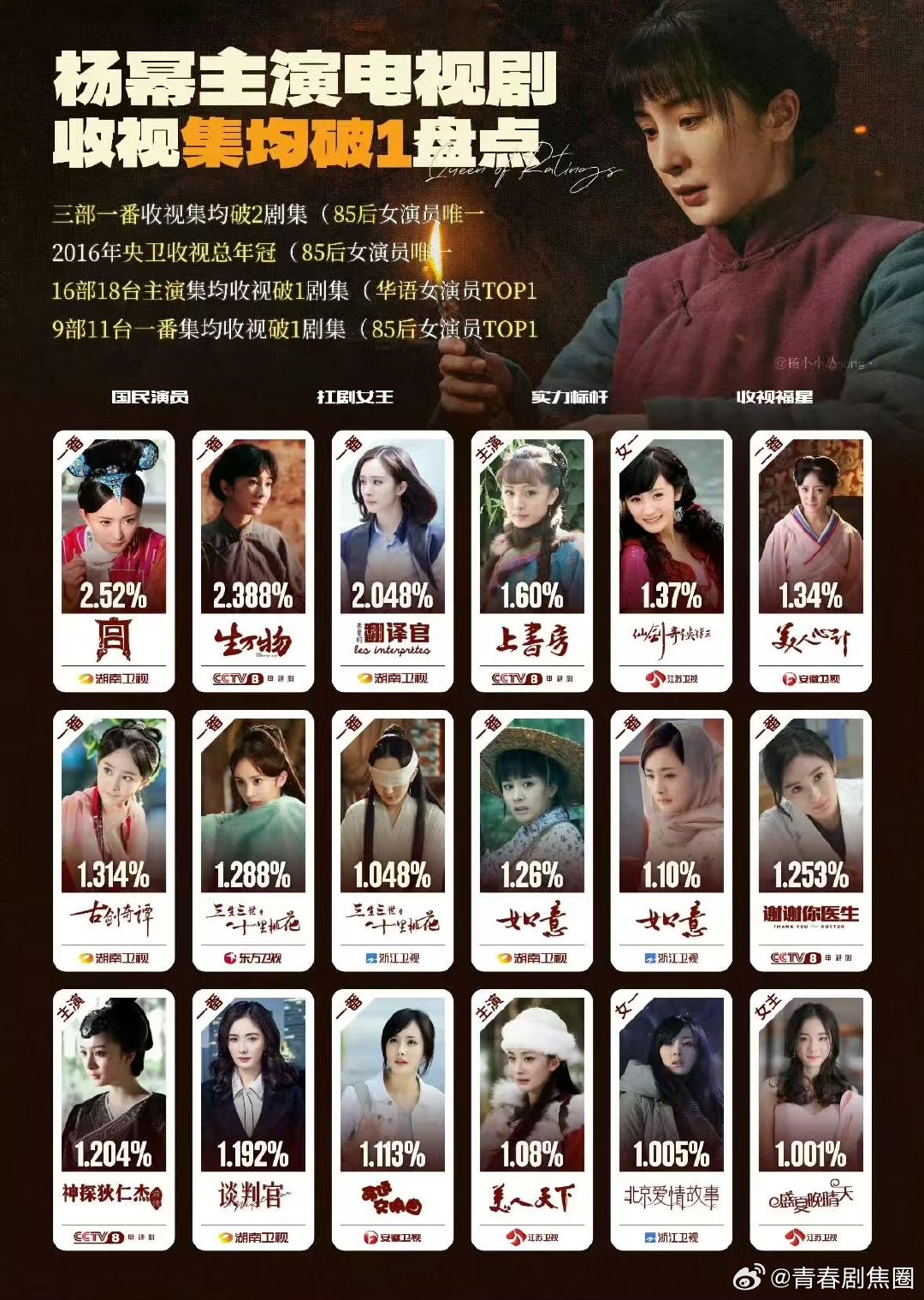 杨幂当年一路小跑的努力全实现了18 年就拿下超级 IP 女演员,阅文当年的眼光真的很超前,杨幂用实力证明值得。