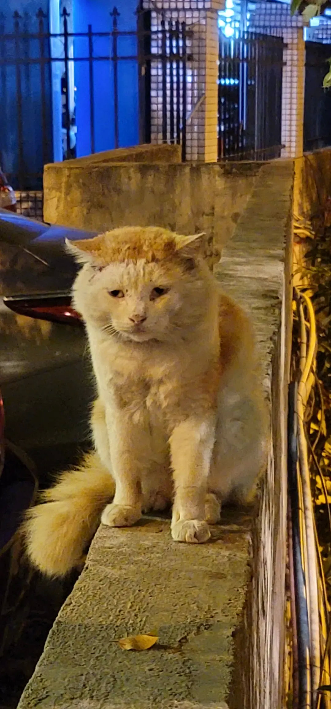 路灯下偶遇一只齐刘海的猫咪,一脸的委屈巴巴,你经历了什么宝贝?