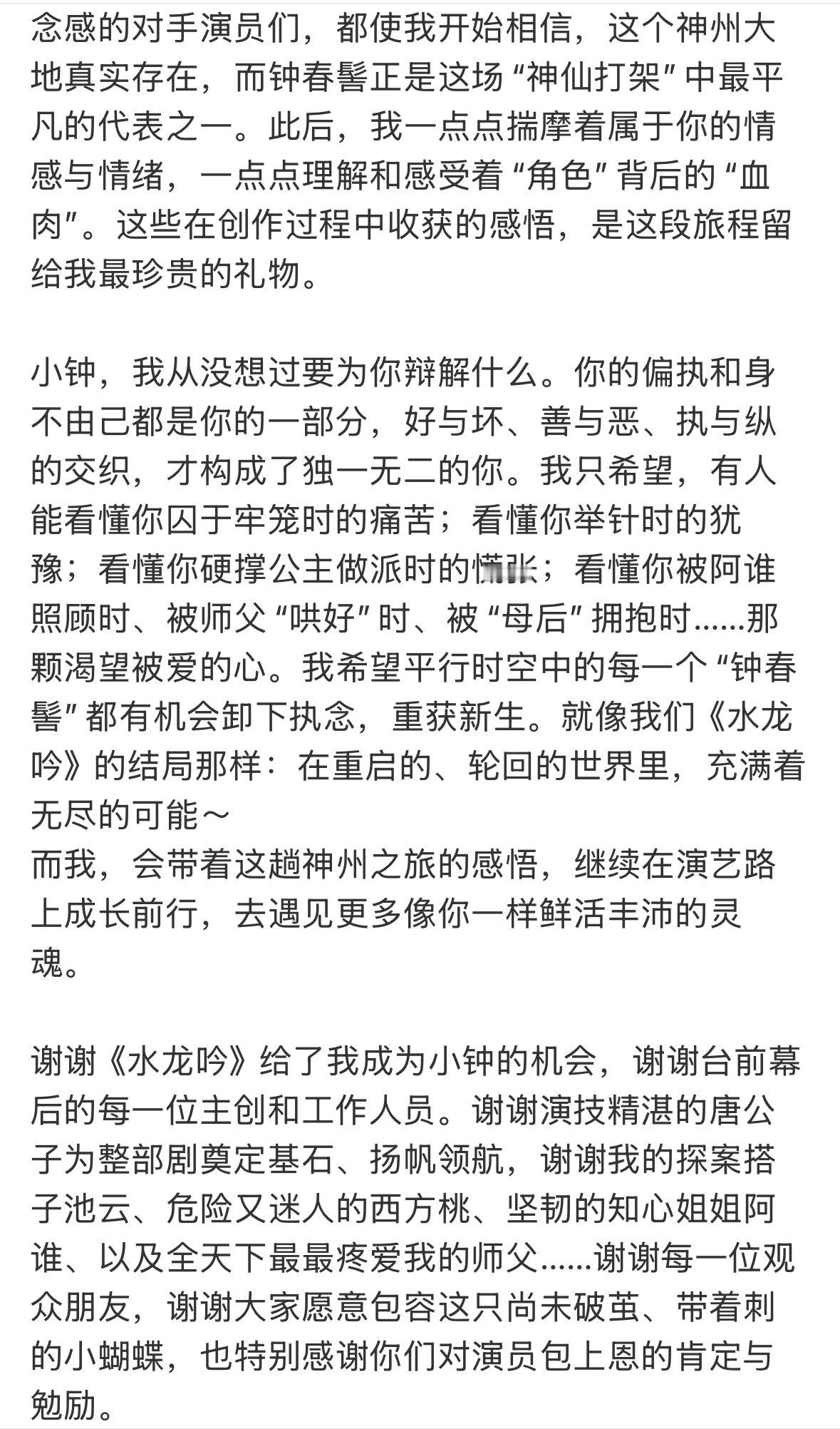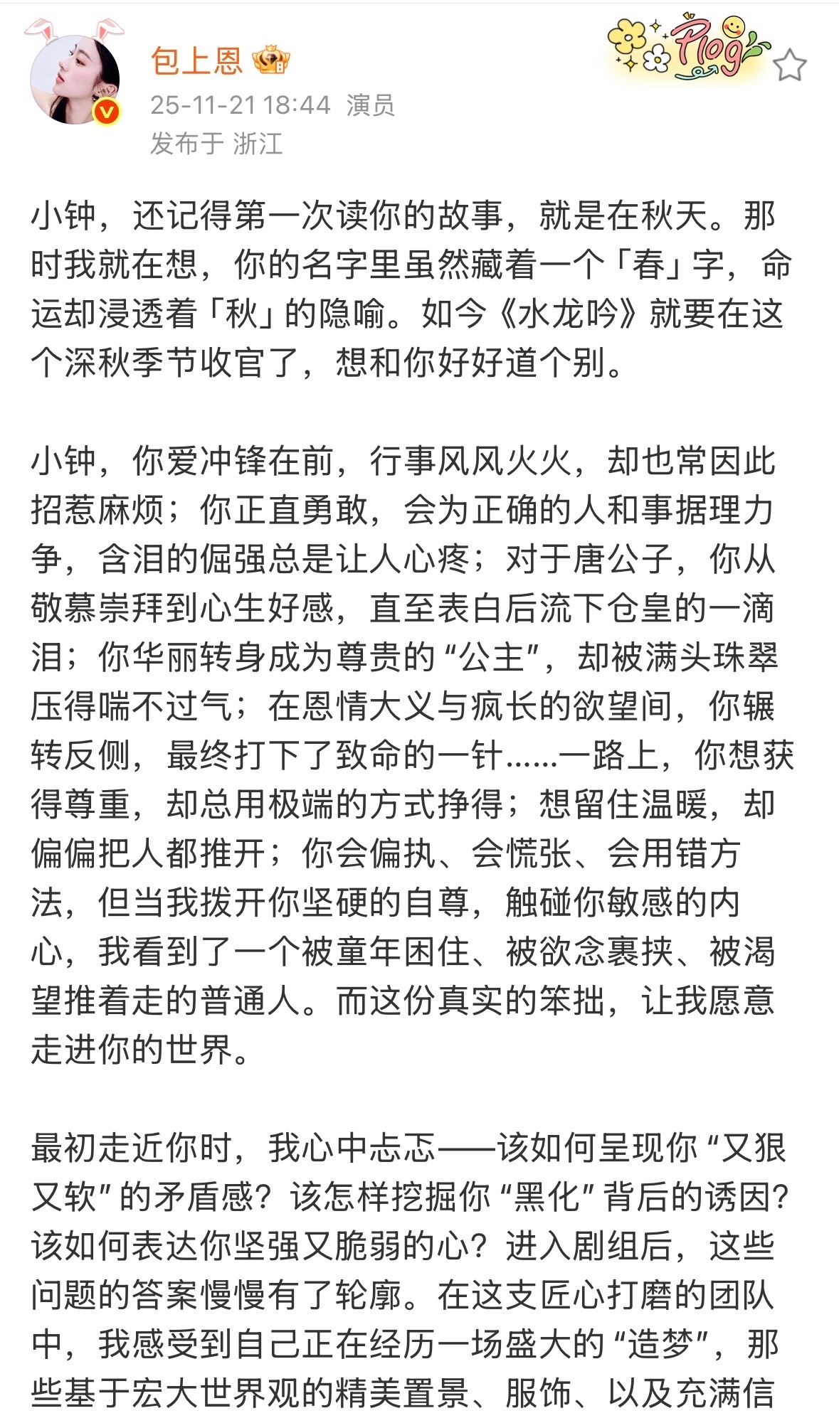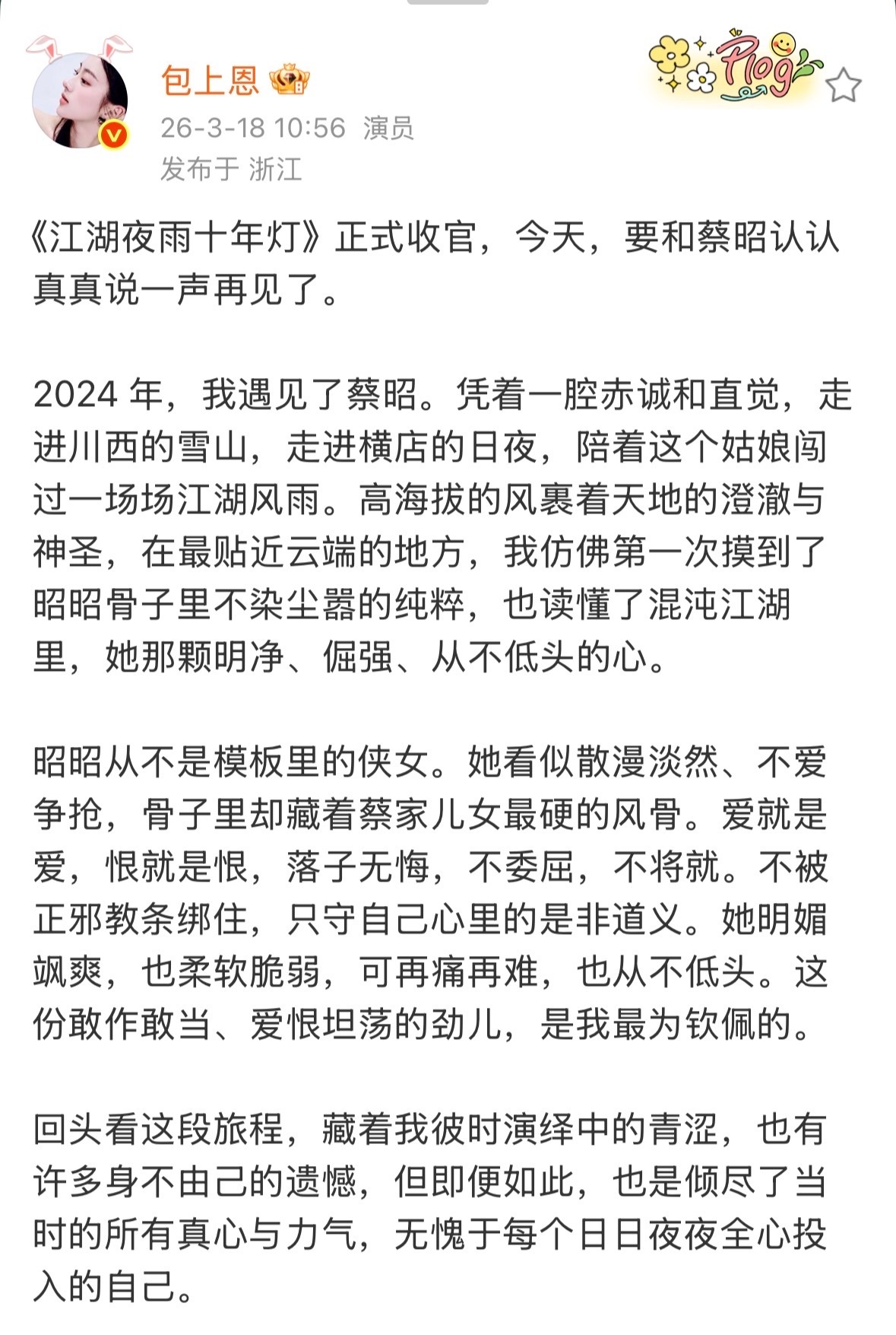 包上恩为每个角色都写了收官小作文 真的好真诚呀🥹