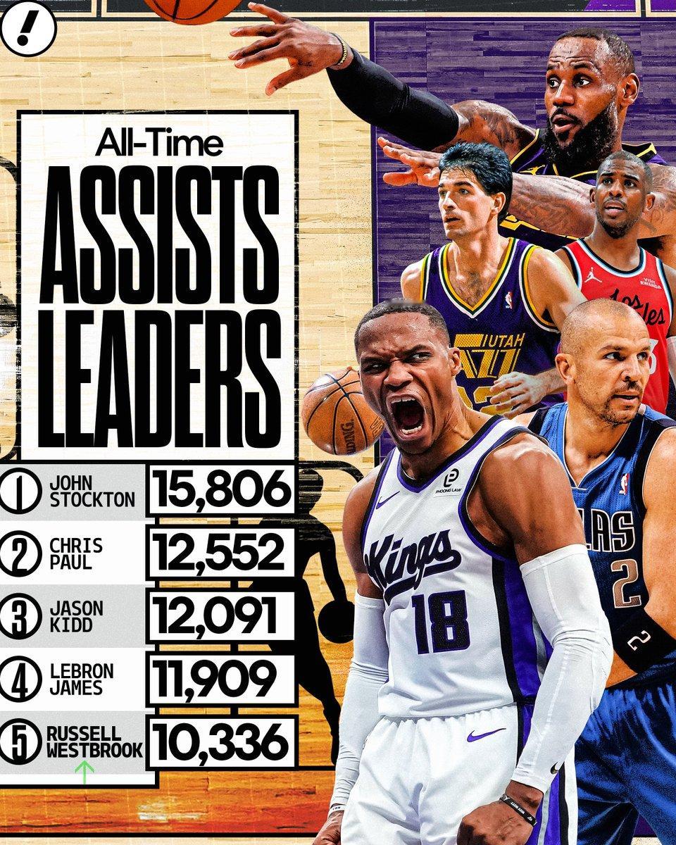 威少生涯助攻数升至历史第五 恭喜威少,升至历史助攻榜第五,威少超越了马克-杰克逊