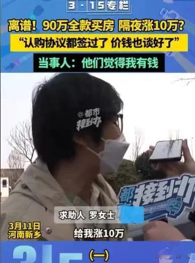 河南新乡,女子看中一套房,她和开发商已经谈好价钱,90万,全款付,他们还签了认购
