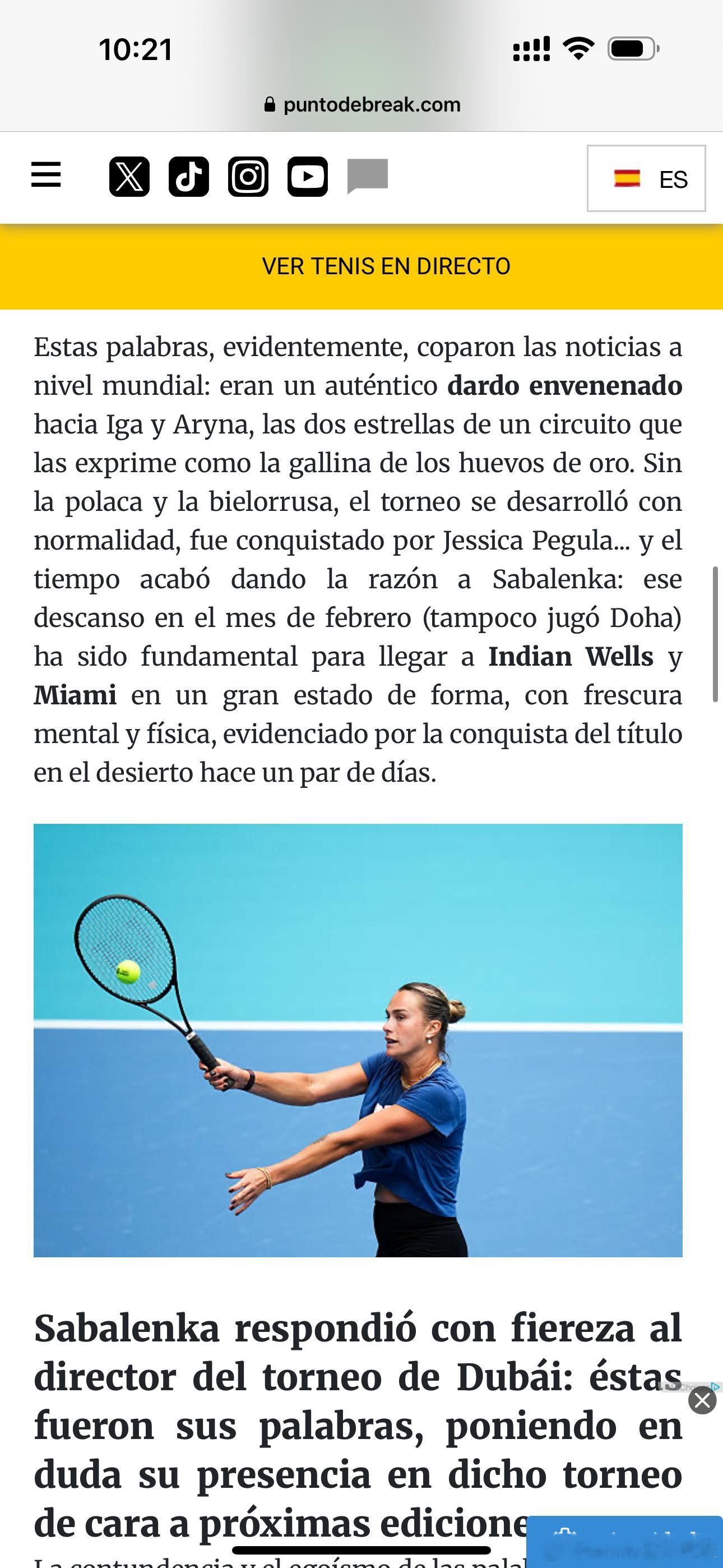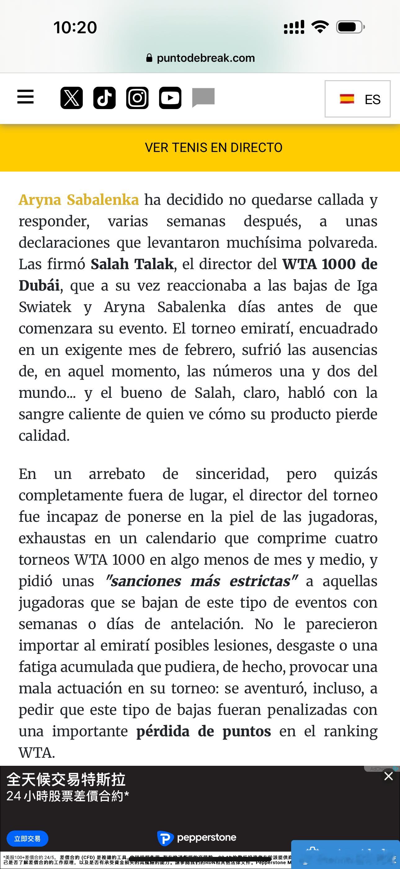 WTA迪拜赛事总监萨拉赫·塔拉克在萨巴伦卡和斯瓦泰克退出迪拜赛后表示这类退赛行为应被处以“ WTA积分重罚”。