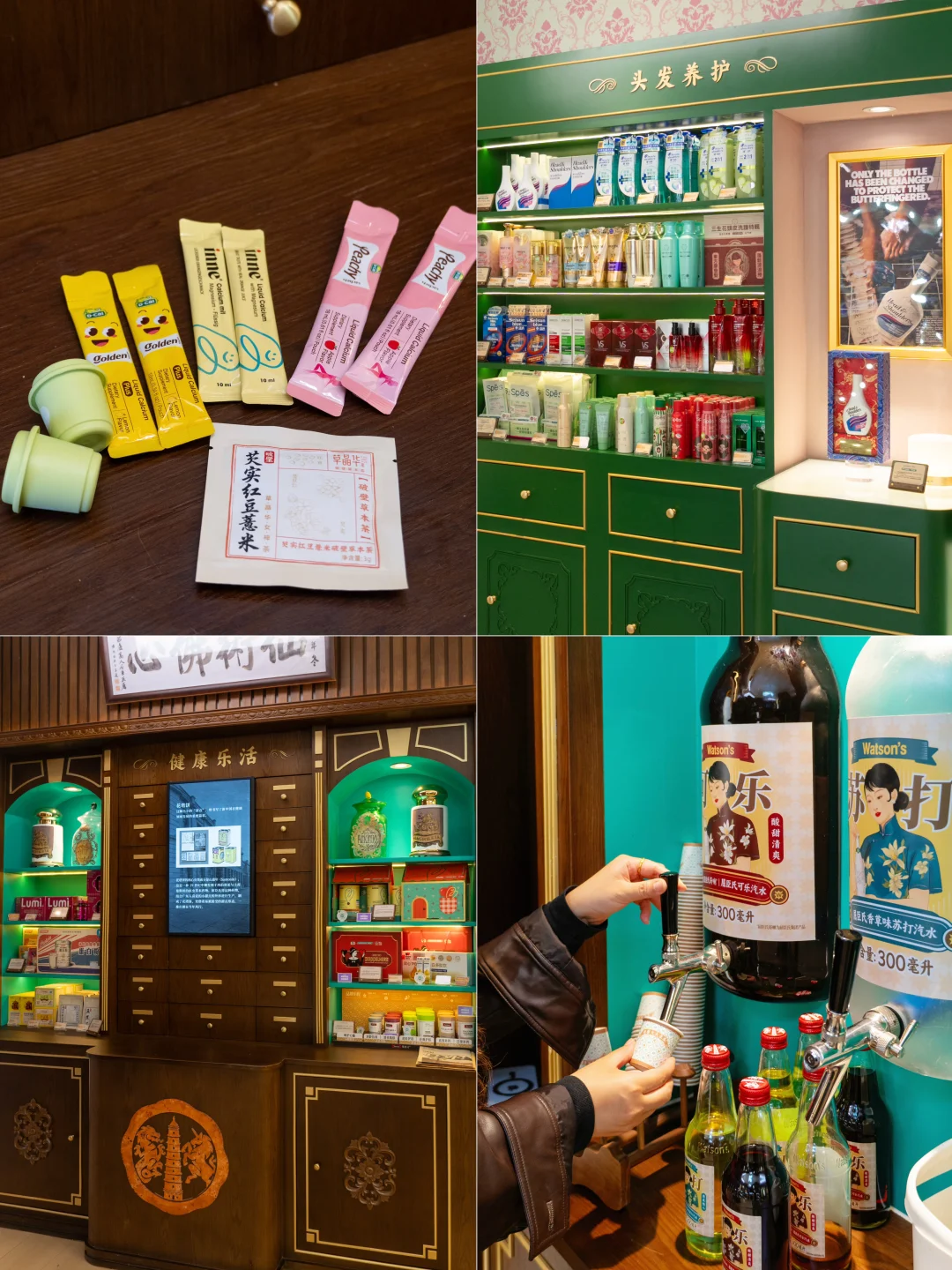 可以在入口处体验ai 换装,让镜头定格成民国大小姐;随后拿上集章报纸,集齐盖章还能领取小样哦;里面的大药房、巨大苏打水,理发店💈、复古客厅🛋️、电视机📺、梳妆台,每一处装置都非常精美且出片,还有各种有趣的互动可以参与呢🥳