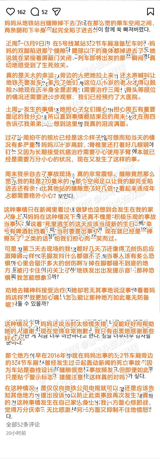 首尔地铁5号线站台空隙发生的踏空事故...海外新鲜事热点现场