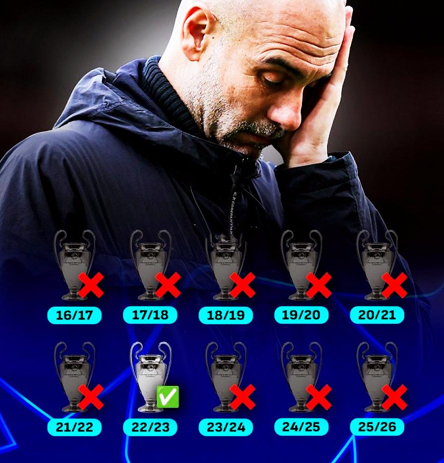 皇马两回合以总比分5-1淘汰了曼城,皇马现在毫无疑问就是曼城和瓜迪奥拉的克星。在欧冠淘汰赛阶段,皇马7次遇到曼城,赢了蓝月亮5次。 瓜迪奥拉带队曼城10年,拿到过欧冠一次冠军,其他赛事则拿了17个冠军,尤其是6个英超冠军,含金量十足。 如果这个夏天瓜迪奥拉离开曼城,那也绝对是以胜利者和功勋教练的姿态离开的,是曼城队史绝对的标志性人物。