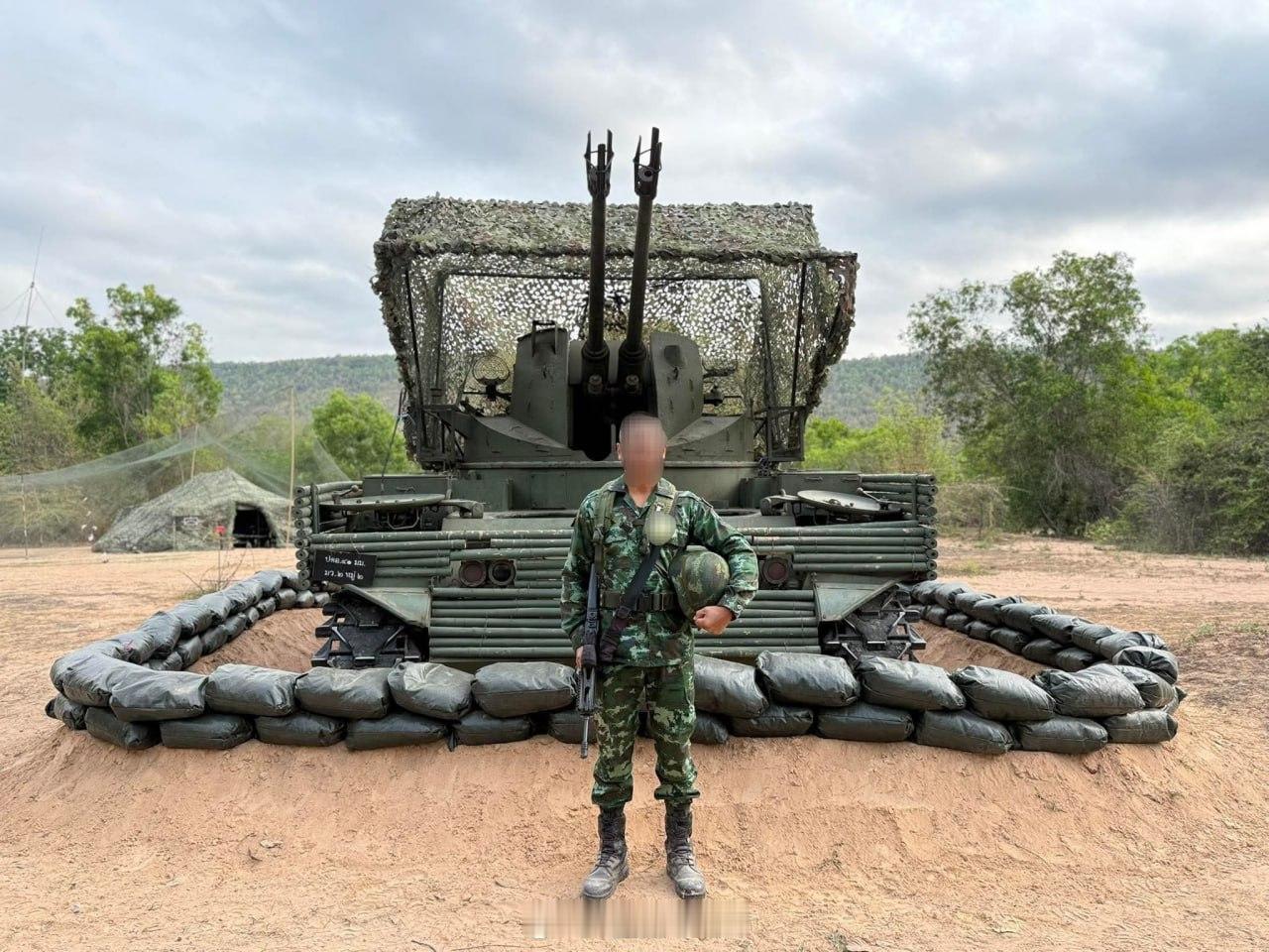 泰国陆军的M42自行高炮安装了竹子装甲和折叠式防护网。