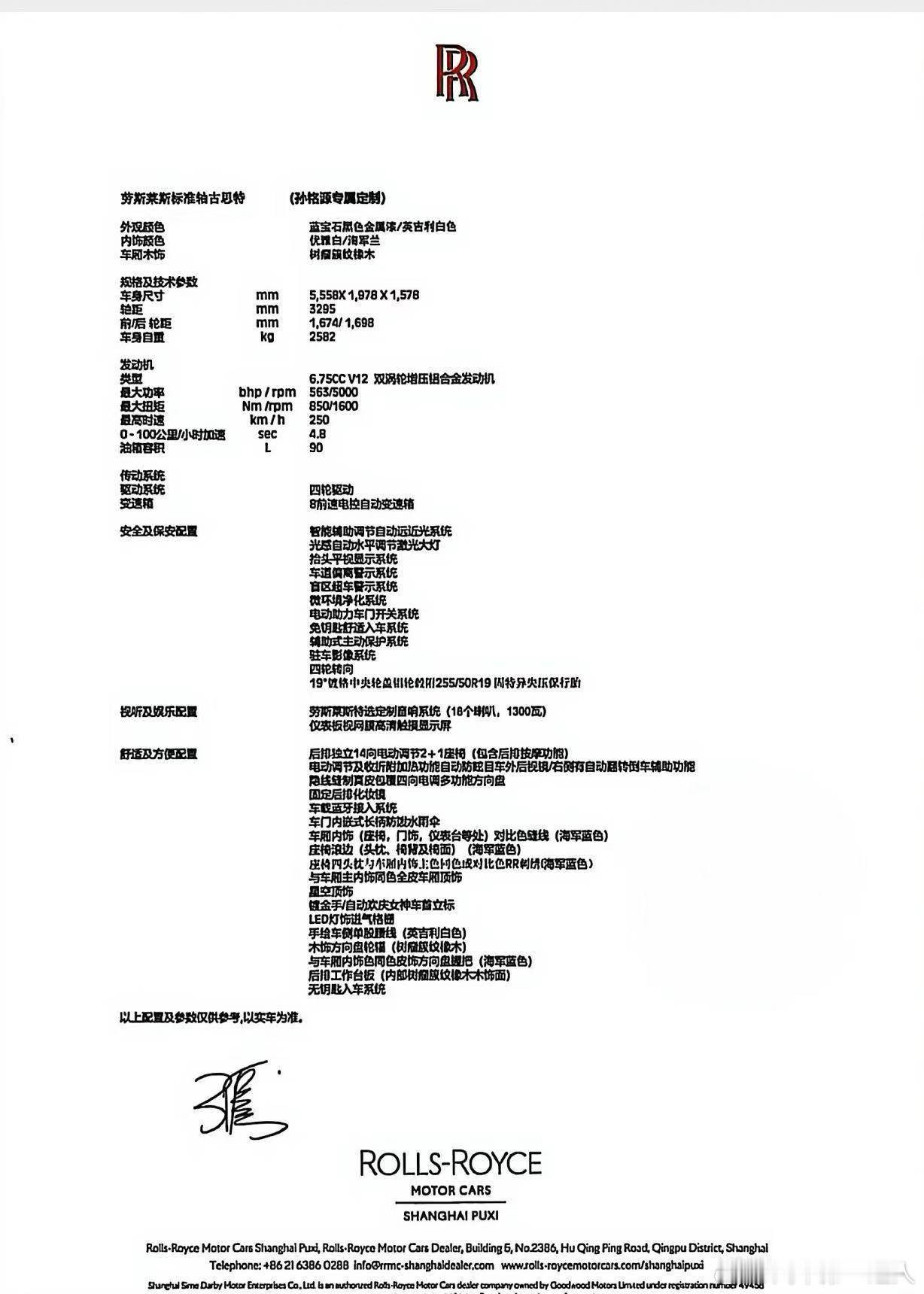 劳斯莱斯 古思特标轴,原厂蓝宝石黑/英吉利白双色,高定版配色,