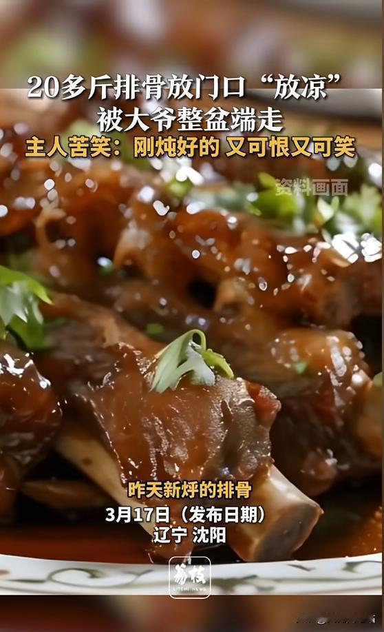 “太不见外了!”3月17日报道,辽宁沈阳,一女子刚炖好40斤排骨,将其中20多斤