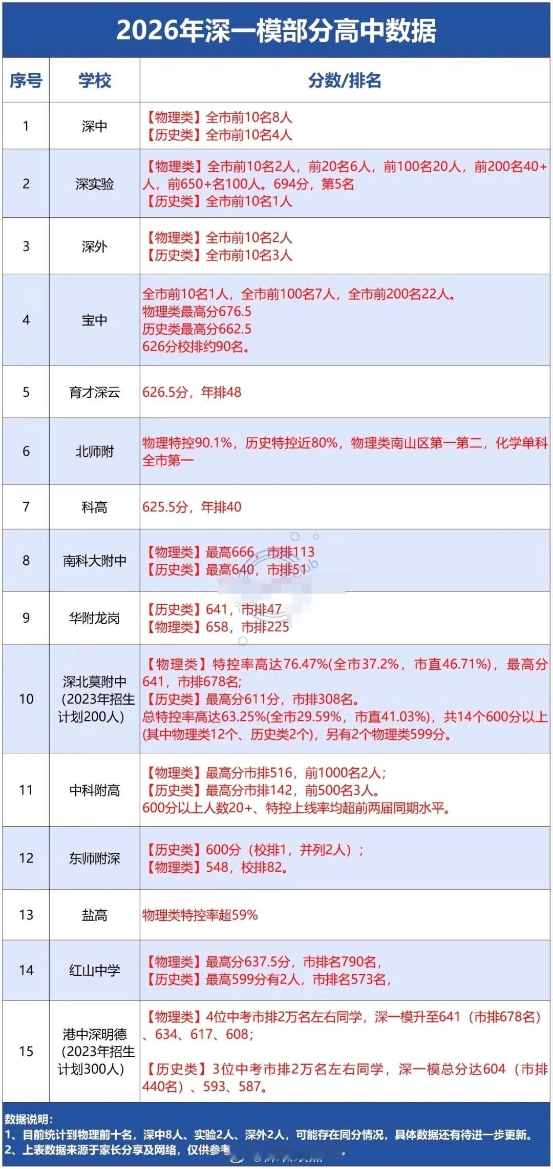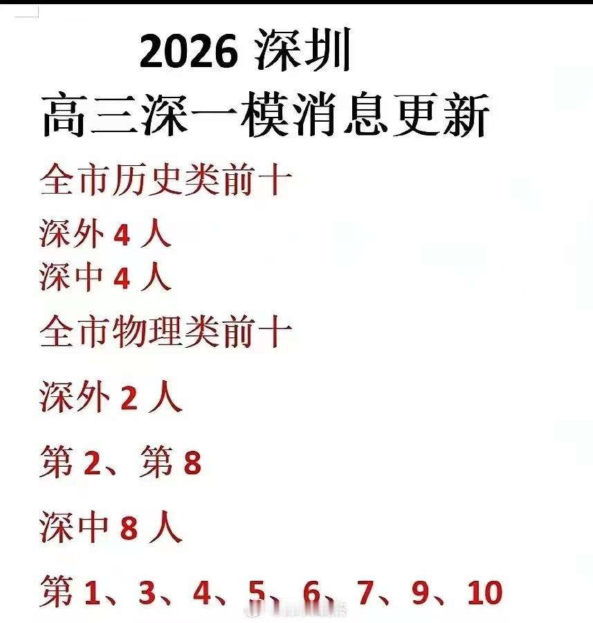 深圳一模成绩出来,深外和深中包揽了18人。 深圳