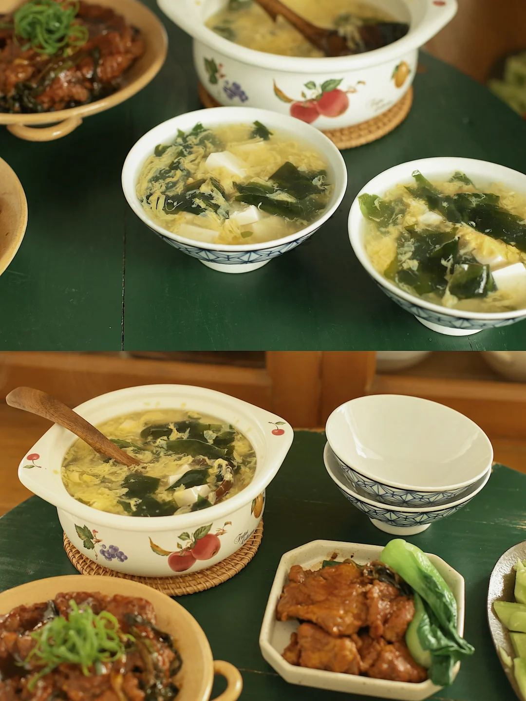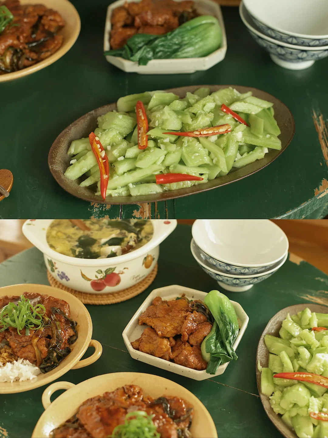 浓油赤酱 葱香四溢~ 葱的香味浸润到汤汁和肉里 太好吃啦! 猪排也外焦里嫩! 菜市场刚买来的小嫩葱 炖煮的焦香软嫩也很好吃 拌米饭又是一口上头的程度! ★具体做法写在图上里啦 还做了凉拌青瓜和豆腐海带汤~ 配拌饭吃很清爽~