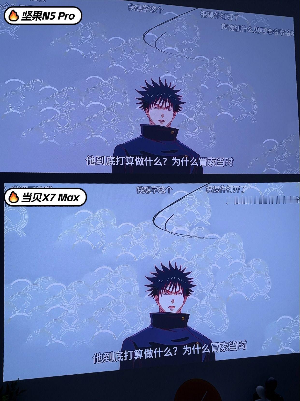投影仪二选一,怎么选? 对比完同价位的当贝x7max和坚果n5pro,我最大的感受就是:粗看差不多,细看差很多!很多人买投影只看参数,真正用起来才知道,那些不起眼的小细节,才是决定舒不舒服的关键。 第一个最直观的就是杜比视界。坚果n5pro不支持解码,遇到杜比片源只能普通播放;当贝x7max可以正常点亮杜比视界,色彩更通透、层次更足,看电影的质感完全不一样。 第二点是三色激光的共同问题色边,坚果n5pro的色边比较明显,字幕、物体边缘都能看到彩色重影,看久了眼睛特别累; 当贝x7max就很干净,戴眼镜看也没什么色边,长时间看剧也舒服很多。 还有我自己肉眼看下来当贝x7max的亮度和色彩更好一些,实拍大家可以直接看。 说实话,两台机器放在一起,不会有那种一眼碾压的夸张差距,毕竟都是做投影的头部品牌而且这个价位的投影仪都用上了各家看门技术,但就是杜比、亮度、色边这三点,天天用、天天看,差距就会比较明显。如果你看重长期观影舒适度,同价位里我更倾向当贝x7max 当贝x7max# 坚果n5pro# 投影仪测评# 家用投影仪#