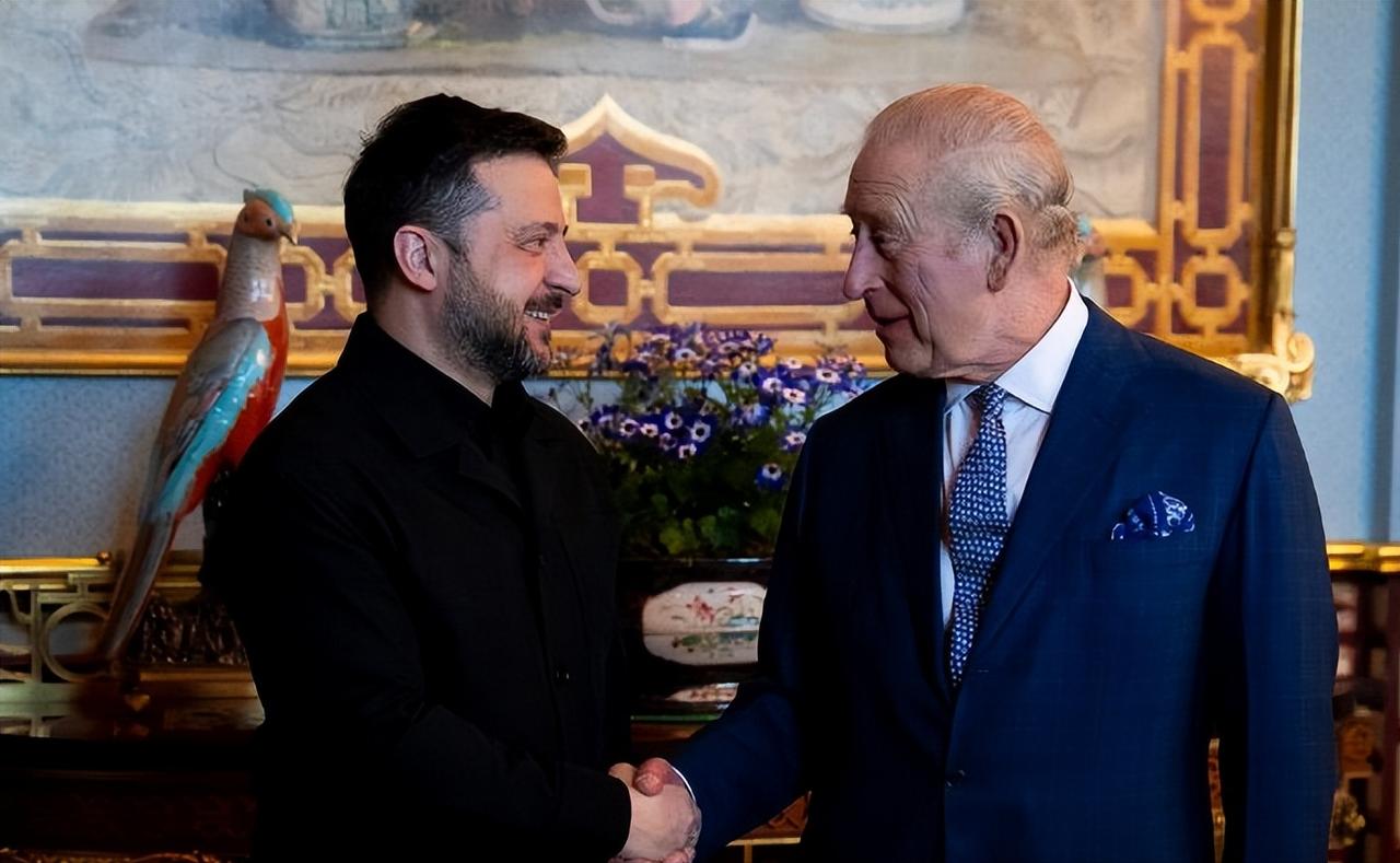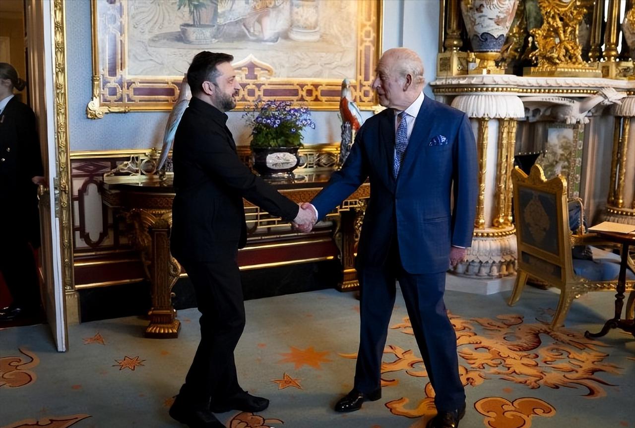 查尔斯国王在白金汉宫接见乌克兰总统泽连斯基! 3月17日,查尔斯国王这天可谓是相当忙碌,和芬兰总统斯图布一起在伦敦观看展览后,又在伦敦圣詹姆斯宫分别接见加拿大高级专员、圣文森特和格林纳丁斯高级专员和澳大利亚高级专员。 不仅如此,当天乌克兰总统泽连斯基也来了,不过查尔斯国王却选择了在白金汉宫这个君主官方办公点接见他,更加重视。 查尔斯国王一身西装革履,泽连斯基则依旧是黑色POLO衫,不过这样的着装在这些年里也成为他独特的着装风格了。