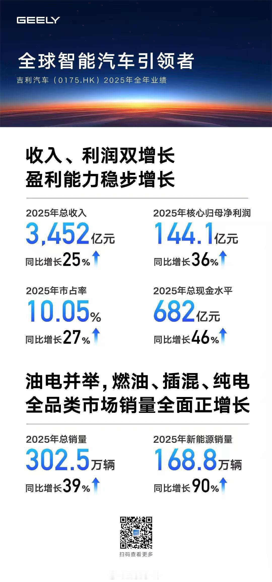 今天,吉利汽车公布了2025年全年业绩。