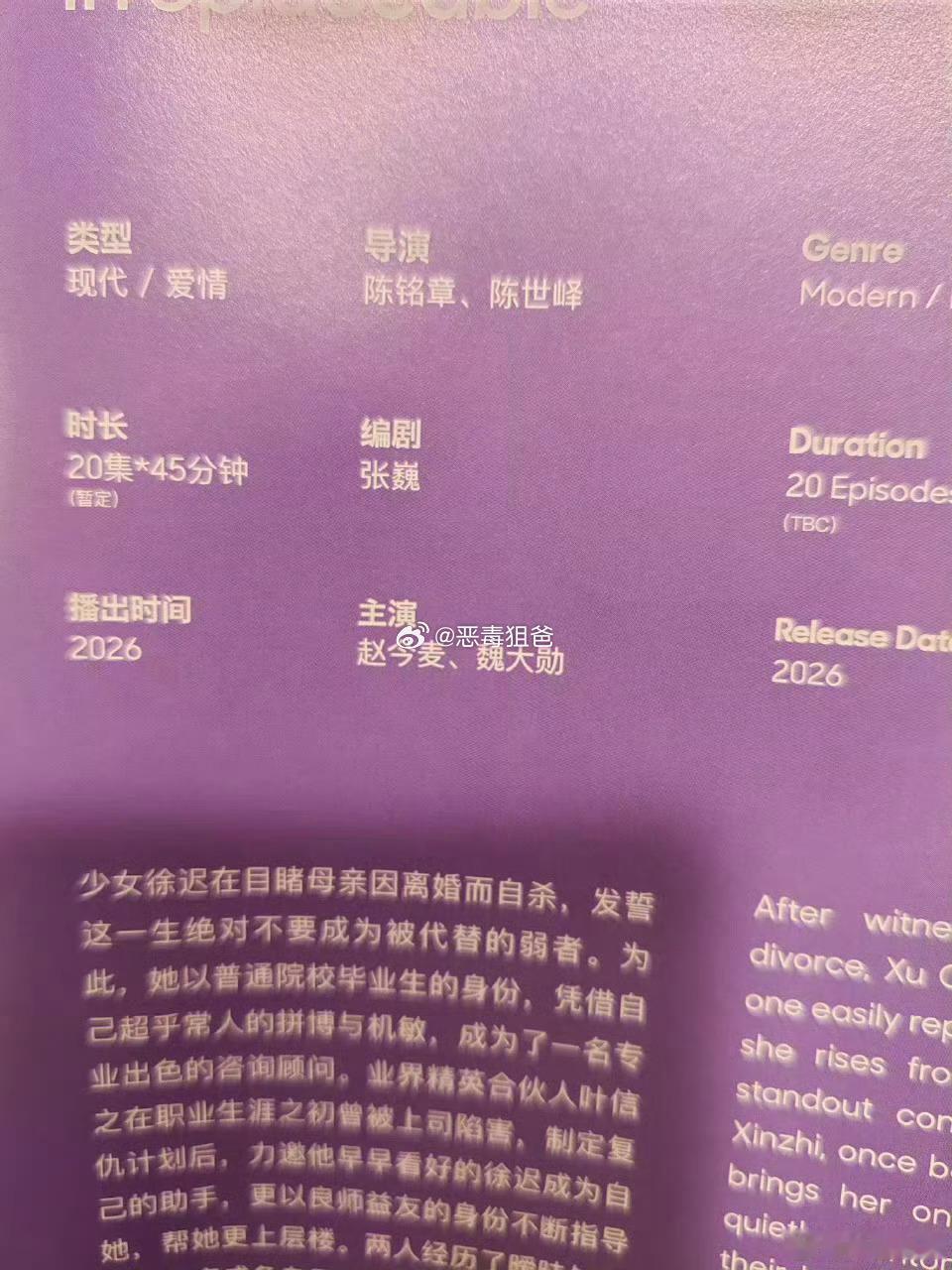 赵今麦《无可替代》新简介暂定20集45分钟 期待我们徐迟职业女强人