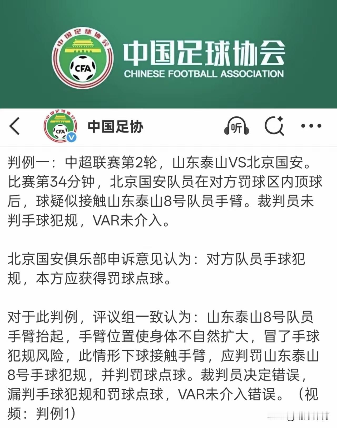 中国足协为北京国安发声! 京鲁大战,裁判漏判了北京国安的点球作真是朝中有人好做官啊! 这次足协的各位评议专家眼睛不瞎了,也不用再去求助国际足联了! 上个赛季,泰山和申花的比赛中,申花的马纳法那个手球比马德鲁加的那个手球哪个更明显呢!普通人都能分辨出来!可是足协的各位评议专家却无法判断了!还委婉的去求助国际足联! 就因为是北京国安的球迷和几个媒体人疯狂的在网上关注这个疑似手球,足协就坐不住了啊!立马为北京国安叫屈啊! 真是天大的笑话!