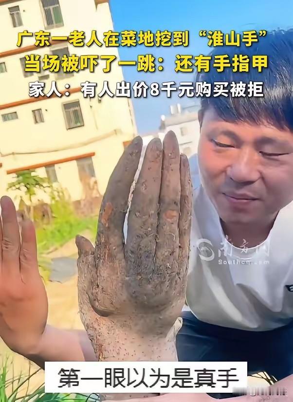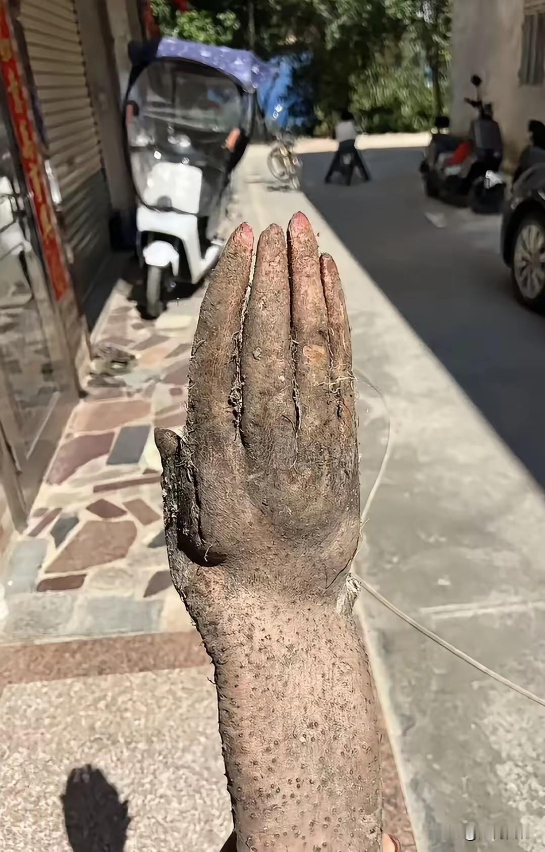 山药长成了人手的形状,看着真是把人吓一大跳,这东西怎么长的,为什么长得这么像人手?说这个人手型的山药是在广东揭阳挖出来的,非常的罕见,有人给递出8000元他高价,是人家也没有卖,虽然这东西长得很奇特,但是没有任何收藏价值,因为这东西不好存放,要是换成我的话,别说是给8000元,就是给800元,我也会卖掉它!