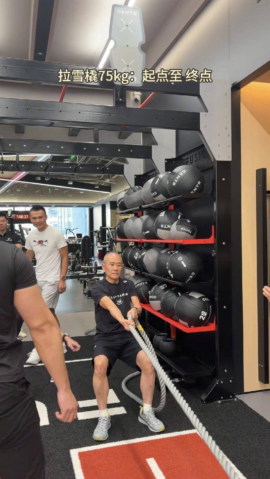 王石不戴头套了,敢大大方方曝光后脑勺 ,全是白头发,但依然戴名表彰显身份! 近日,王石现身健身房健身,据说他要参加新的比赛,今年已经75岁的他太能折腾了,一个老年人,每天这么大的运动量真的很好吗? 只见王石玩得不亦乐乎,先是在跑步机上跑步,直接曝光了整个后脑勺,他头发虽然短,但全白了,没有一根黑头发,特别显老,光看后脑勺,会以为他是90多岁。 他还推着重重的雪橇往前走,太费力了,以至于他咬牙切齿,脖子里面青筋爆出,看着让人心疼。 他拔河,并且在器材上拉伸,弄得自己满身是汗,拿着毛巾自己擦,脸上皱纹更多了。 王石之前出来是长头发,还会戴假发套,甚至有人说他纹眉。 但现在他完全不装了,本来就已经75岁了,马上快八十岁的老人了,爱怎么样怎么样吧,他都不在乎网上对他和田朴珺恋情的评价。 于是他就光头出来了,基本上秃顶了,头发全白了,确实挺老的,毕竟75岁了。 王石不在乎别人对他外表的评价,但却在运动的时候戴了一款黑色的腕表,彰显他的身份和地位,一般情况只有特别有钱的男人才会买这种表。 虽然王石是个75岁的老头,老态龙钟满头白发满脸皱纹,但看了他的那块腕表,就算不认识他的人,也不敢随便轻视他。