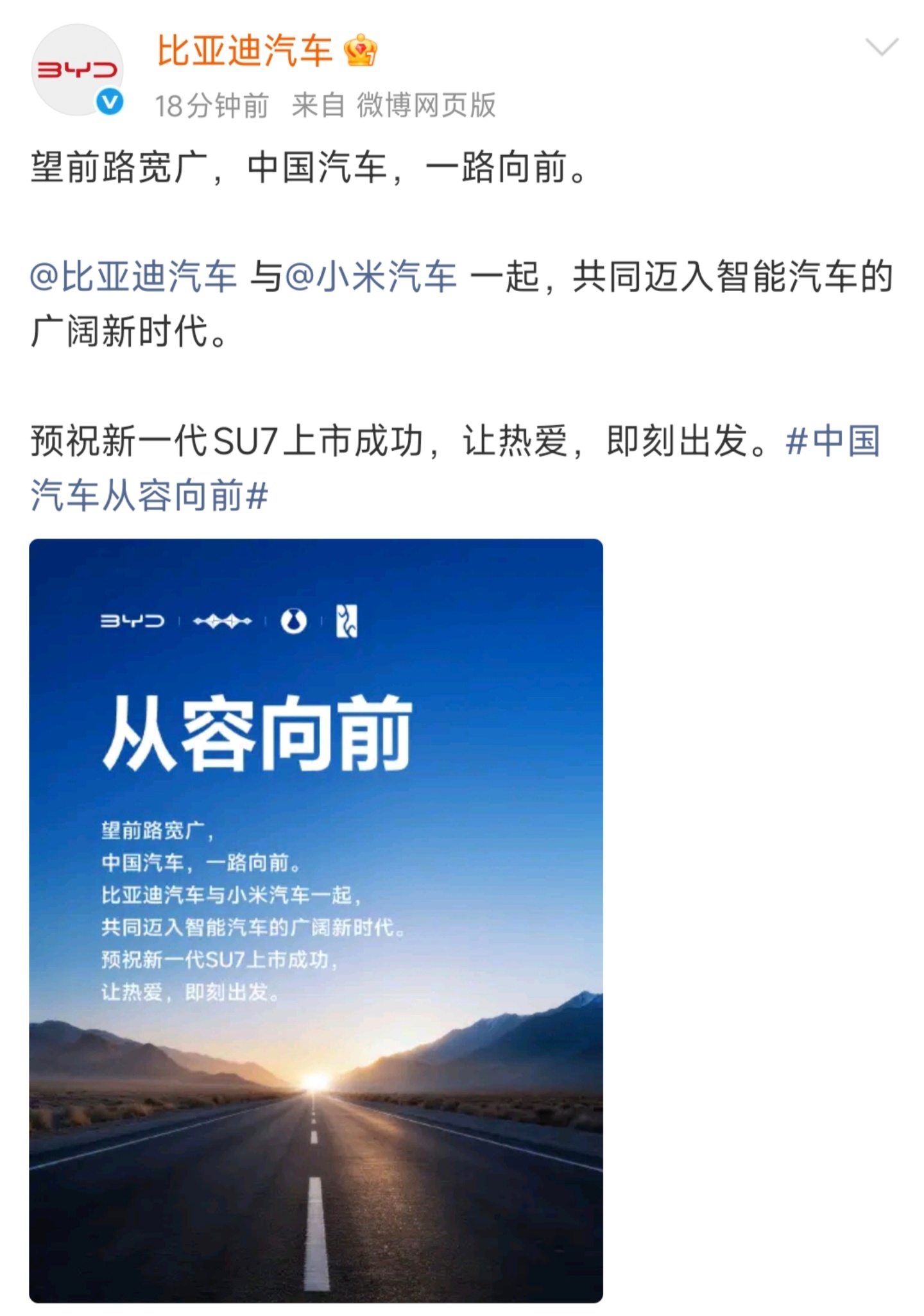 各大车企为小米送来祝福,预祝新SU7上市成功