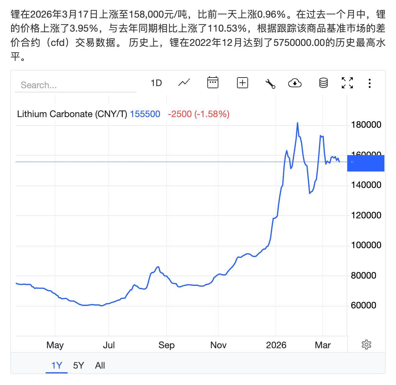 给大家看一眼锂价的走势。动力电池又重新开始涨价了。叠加 AI 导致的内存涨价,很