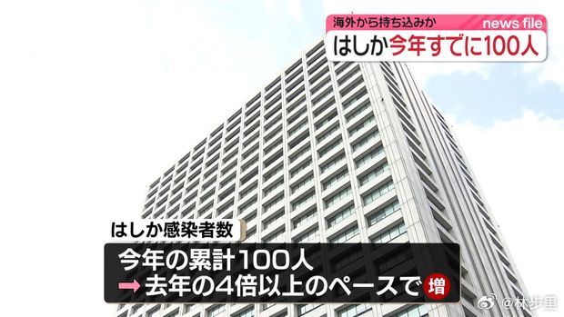 全球多个国家出现麻疹疫情反弹日本也出现麻疹疫情。东京今年麻疹病例的增速,是去年同