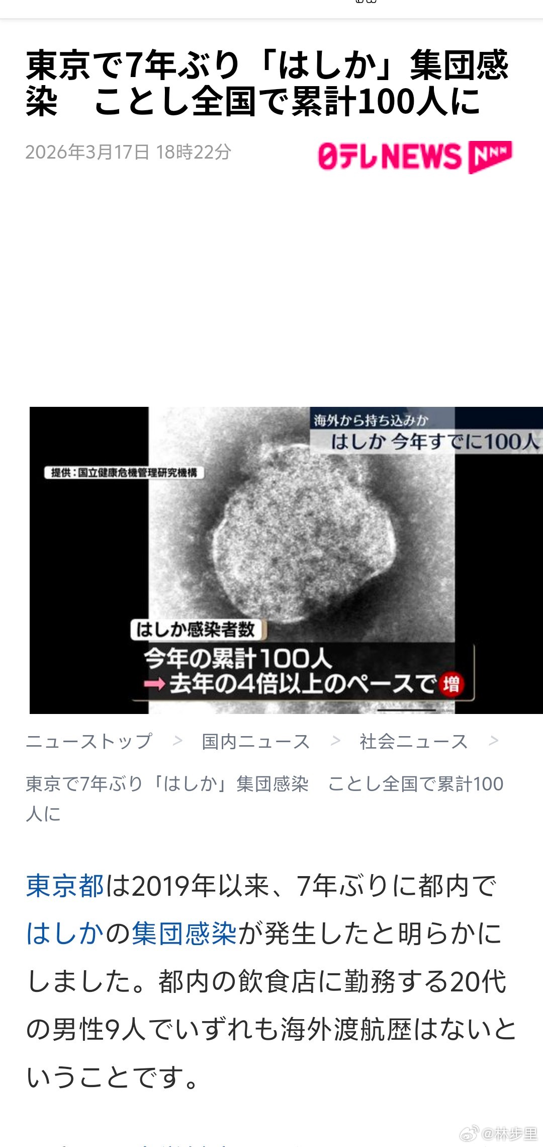 东京今年麻疹病例的增速,是去年同期的4倍多。