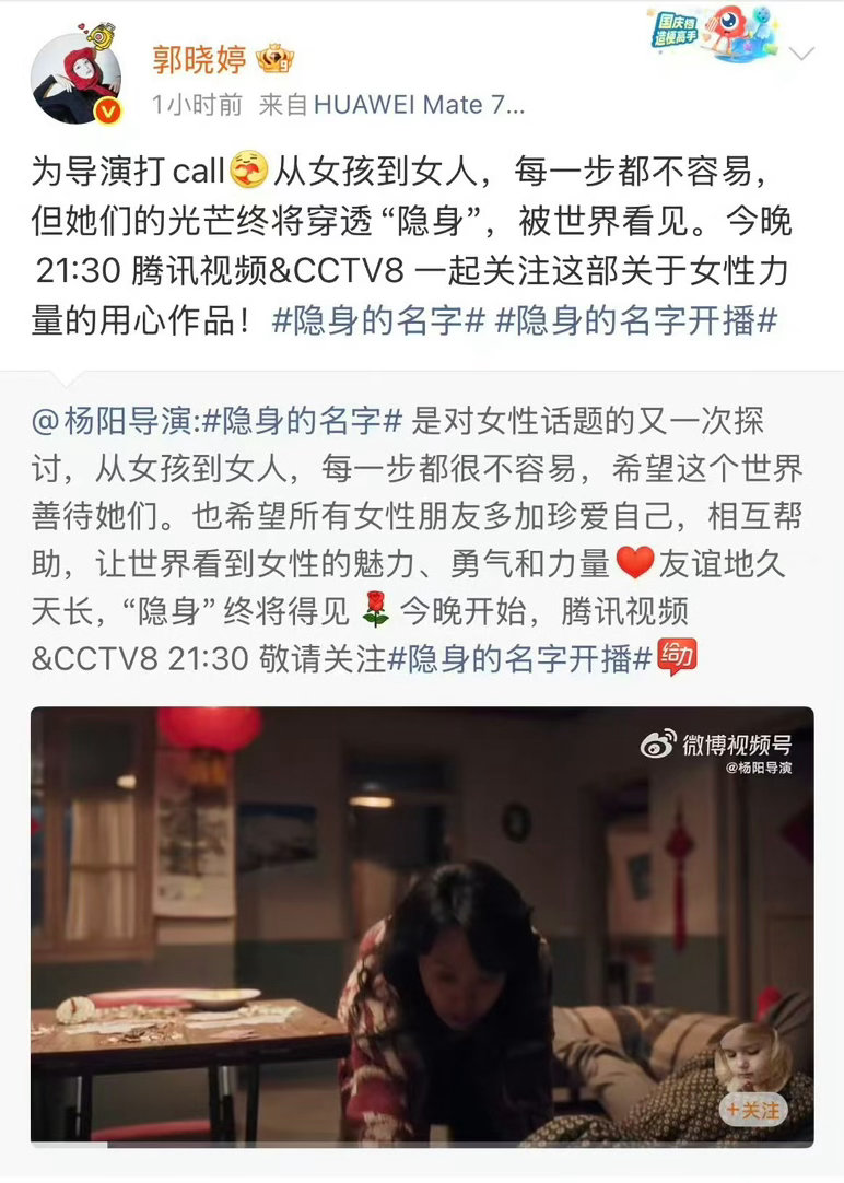半个娱乐圈女艺人安利隐身的名字隐身的名字杨紫、钟楚曦、李沁、金晨、林允...半个娱乐圈女艺人集体出动,这不是“阵仗大”,是女性创作者在互相托举。全女班底拍女性故事,本身就值得一张入场券。🎬✨