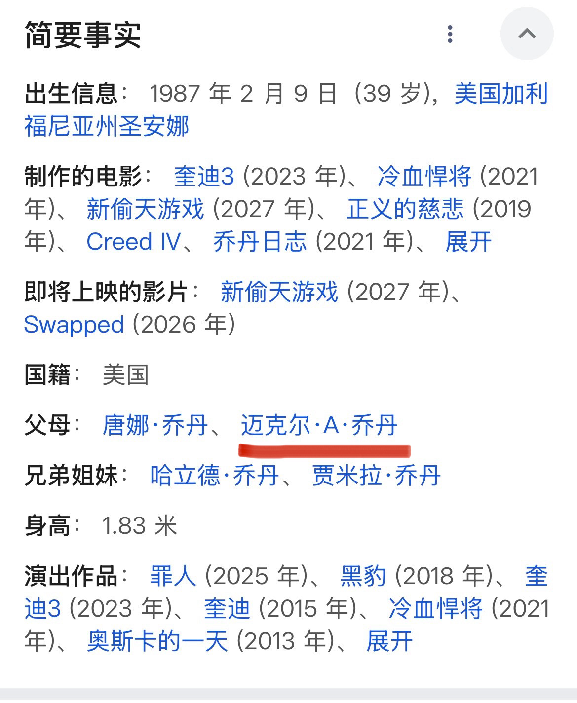 原来迈克尔·B·乔丹的爸爸叫迈克尔·A·乔丹啊,过去真没注意。