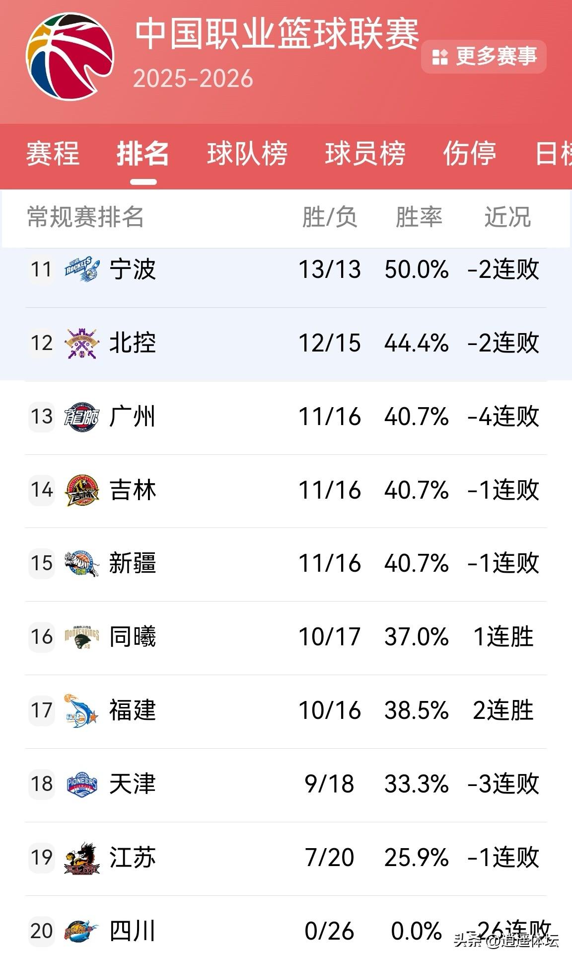 CBA最新排行榜来了! 27轮结束了部分比赛,最新的排行榜显示,前四名的队伍表现最差的是山东高速男篮!本轮比赛只有山东高速输掉了比赛,也是最近两轮连续输掉比赛的球队,球队的状态需要及时调整。上海久事战胜山东高速以后,继续保持连胜的状态,来到了连胜8场。 4一10名的排行队伍,深圳、辽宁,山西和青岛取得了胜利。青岛男篮在客场两连败以后,在主场战胜江苏取得了近三场的第一场胜利,胜利,浙江则在战胜山东高速以后,败给了同曦,这样的表现不稳定。辽宁强势六连胜! 11一20名的队伍,福建回暖取得了两连胜。其余的队伍有的还没有比赛,其余的还是不温不火啊。