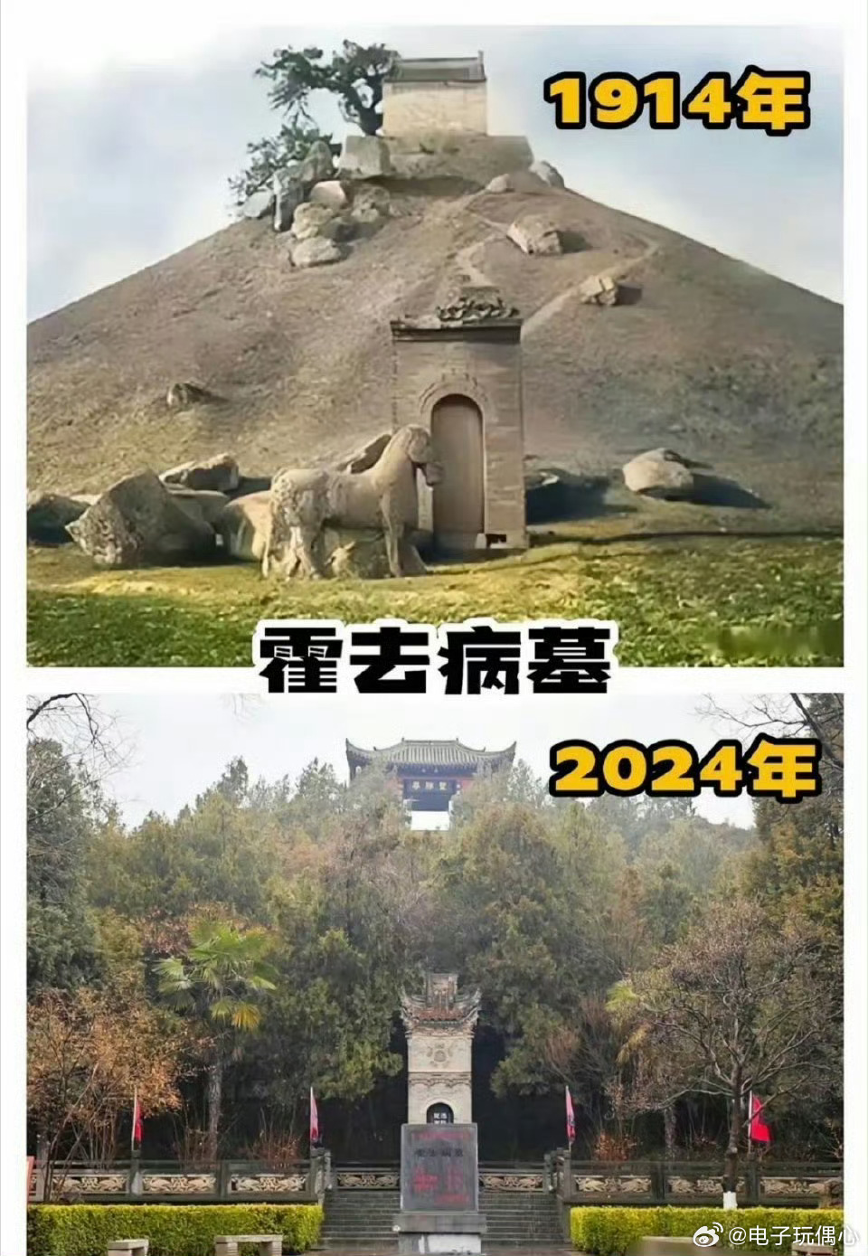 1914年,被毁前的霍去病墓,好有古意啊