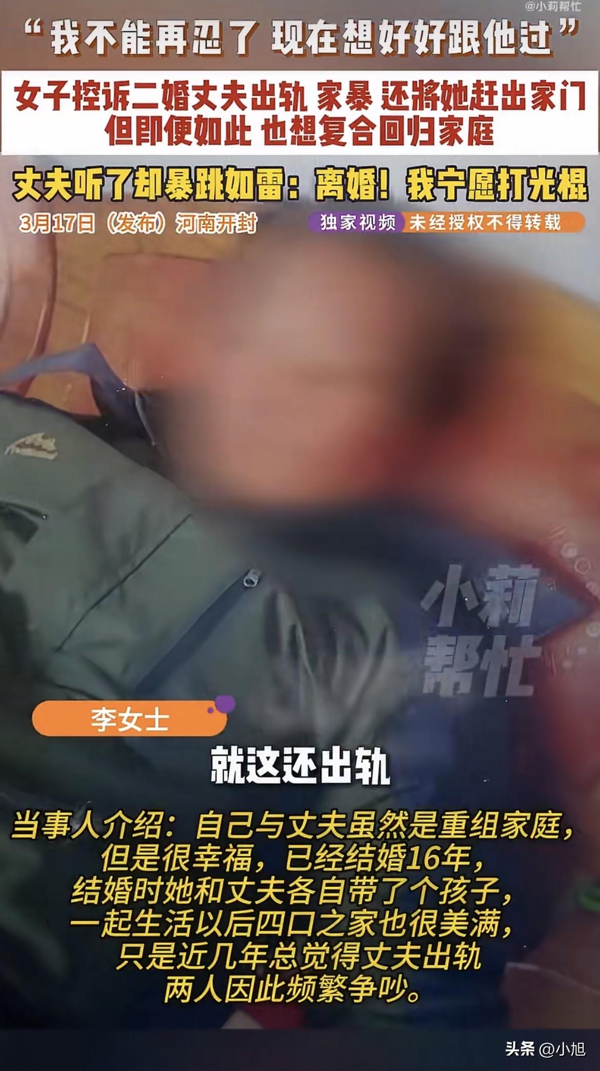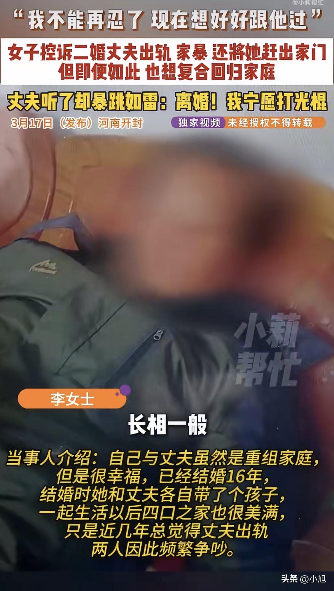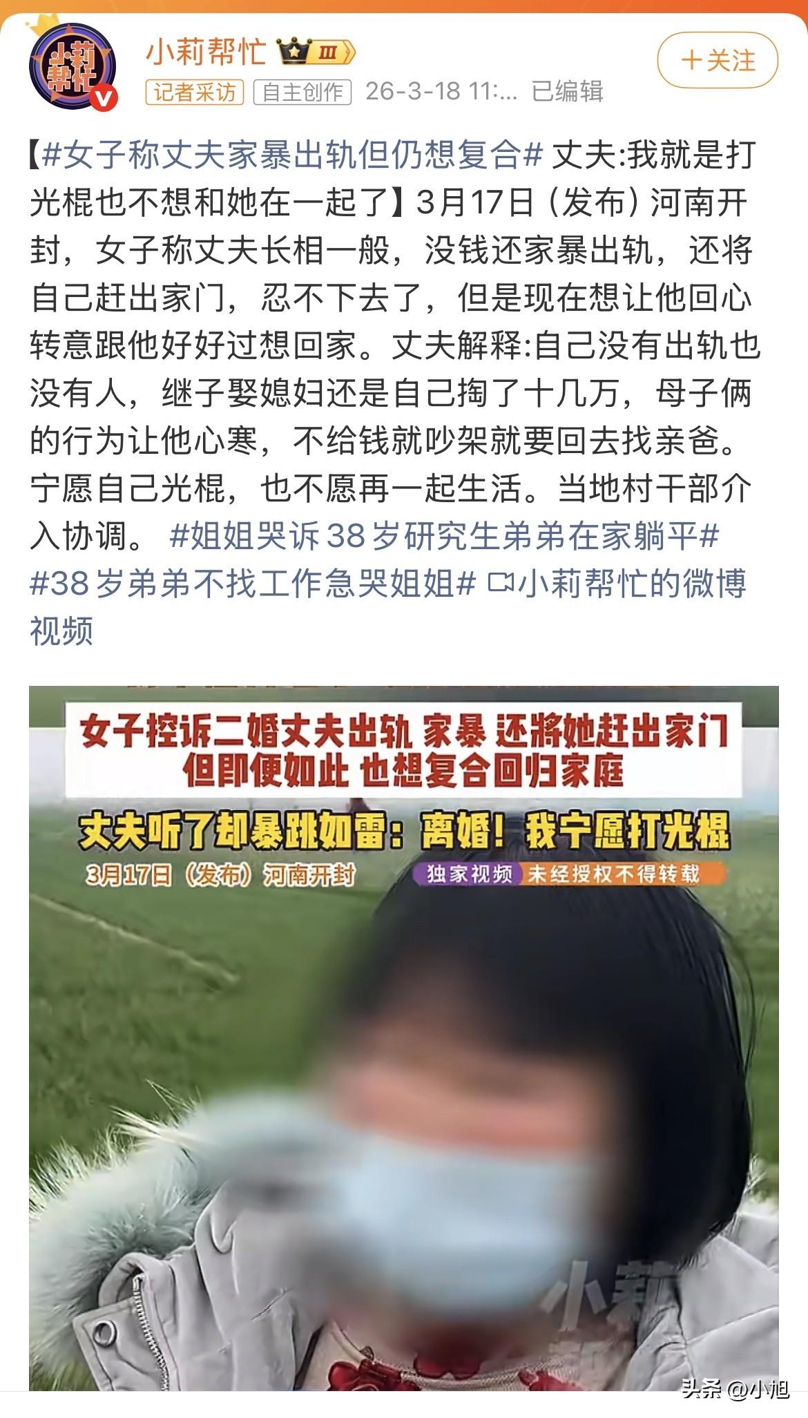 开封那个女人站在村口,对着镜头把丈夫数落了一顿。年龄大,长得不行,没钱,还出轨,打人,换锁把她赶出门。 记者问她到底想咋样,她说想回家,想跟这个男人好好过。 这话一出,旁边看热闹的都愣了。你都把他骂成这样了,还回去干啥? 女人低着头不吭声,手指头来回绞着衣角。 俩人结婚十六年,是凑到一块儿的。她带过来一个十几岁的儿子,丈夫带过来一个五六岁的闺女。头些年过得还行,她在家伺候老人孩子,男人出去打工挣钱,逢年过节回来,一大家子坐在院子里吃饭。 三四年前出了事。男人迷上刷短视频,跟个女网友聊得热乎。女人说那女的还打过电话,让她腾地方。 她说自己一直忍着,男人也认过错,说以后不联系了。可一年前又吵起来,男人动了手,把她撵出去,门锁也换了,到现在进不去家。 女人说儿子二十多了,婆婆去世那会儿儿子没回来奔丧,男人就一直生这个气。 她说这话的时候,嗓子眼儿哽了一下。“儿子现在20多了,我给他打电话他就是不回来,不听我的。” 记者跑去村里,男人不在家。村干部倒是在,说了几句话挺关键——两口子闹离婚主要是怀疑男人有外遇,但是没有出轨证据,全凭猜。 这话啥意思?就是女人说的那些事儿,拿不出真凭实据。 村干部还说,这夫妻俩的矛盾,可能还跟女人的儿子有关系。 后来记者打电话联系上男人了。男人在电话那头,话说得死硬。宁愿打光棍也不跟她过了。 男人说自己没出轨,没那些乱七八糟的事。继子结婚买房,他前前后后掏了十几万。 十几万。在开封农村,这钱得攒多少年。 结果呢?继子还是伸手要钱,不给就翻脸。最寒心的是啥?他出钱买的房,继子不让他住。一说这事,继子就撂话要去找亲爹。 他亲妈去世,继子连葬礼都没回来。 男人把这些事一件件说出来,电话那头的声音听着就是凉透了。他养了继子这么多年,掏心掏肺,换来的是白眼狼。 女人咋说?儿子就是不懂事。她还说一直记着丈夫的情,现在还想回来好好过日子。 这话听着更拧巴了。她记着丈夫的好,可她儿子干的那些事,她管过没?说过没? 村干部说下一步还要调解。但这事怎么调? 男人那边,钱花了,心凉了,连亲妈去世继子都不露面,这个坎过不去。 女人这边,口口声声说想回家,可她嘴里丈夫还是那个“年龄大长相一般还没钱”的人。这话听着,哪像是想回去过日子的? 网友留言说得挺直白:男的对继子都舍得花钱,真不是冷血那种人。也有人说:男的再委屈,动手那一下,道理就全没了。 可仔细琢磨,女人说的话里,有一个地方漏了馅。 她说丈夫出轨,拿不出证据。她说丈夫家暴,被赶出来一年了,这中间她在哪?干啥了?现在突然想回去,真是因为念着十六年的情分? 还是因为她那个二十多岁的儿子,已经不需要她管了? 重组家庭,最难的就是孩子。她儿子从十几岁跟着过来,到娶媳妇买房,男人掏了十几万。这份付出,换了谁都得记着。可她儿子不记,还拿去找亲爹这事戳人心窝子。 她夹在中间,从来没把儿子掰过来。现在儿子大了,成家了,不用她管了,她才想起来回头。 男人那句“宁愿打光棍”,说得硬气。可这话背后,是被伤透了。 一个男人,给继子花十几万娶媳妇,图啥?不就图一家人好好过。结果继子不让他住房,亲妈去世继子不露面,这日子还怎么过? 女人现在想回来,可她想过没有,那个家,还是她走时候的那个家吗? 门锁换了,人心也换了。 她站在村口说想回家的时候,心里到底在想什么?是念着十六年的情分,还是在外头转了一圈,发现没人接盘了? 没人知道。 只知道男人在电话那头,把话撂得死死的。宁愿打光棍,也不跟她过了。 这话说出来,十六年的日子,就算是到头了。 来源:河南广播电视台《小莉帮忙》相关报道