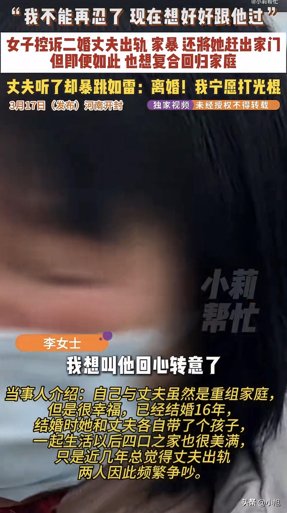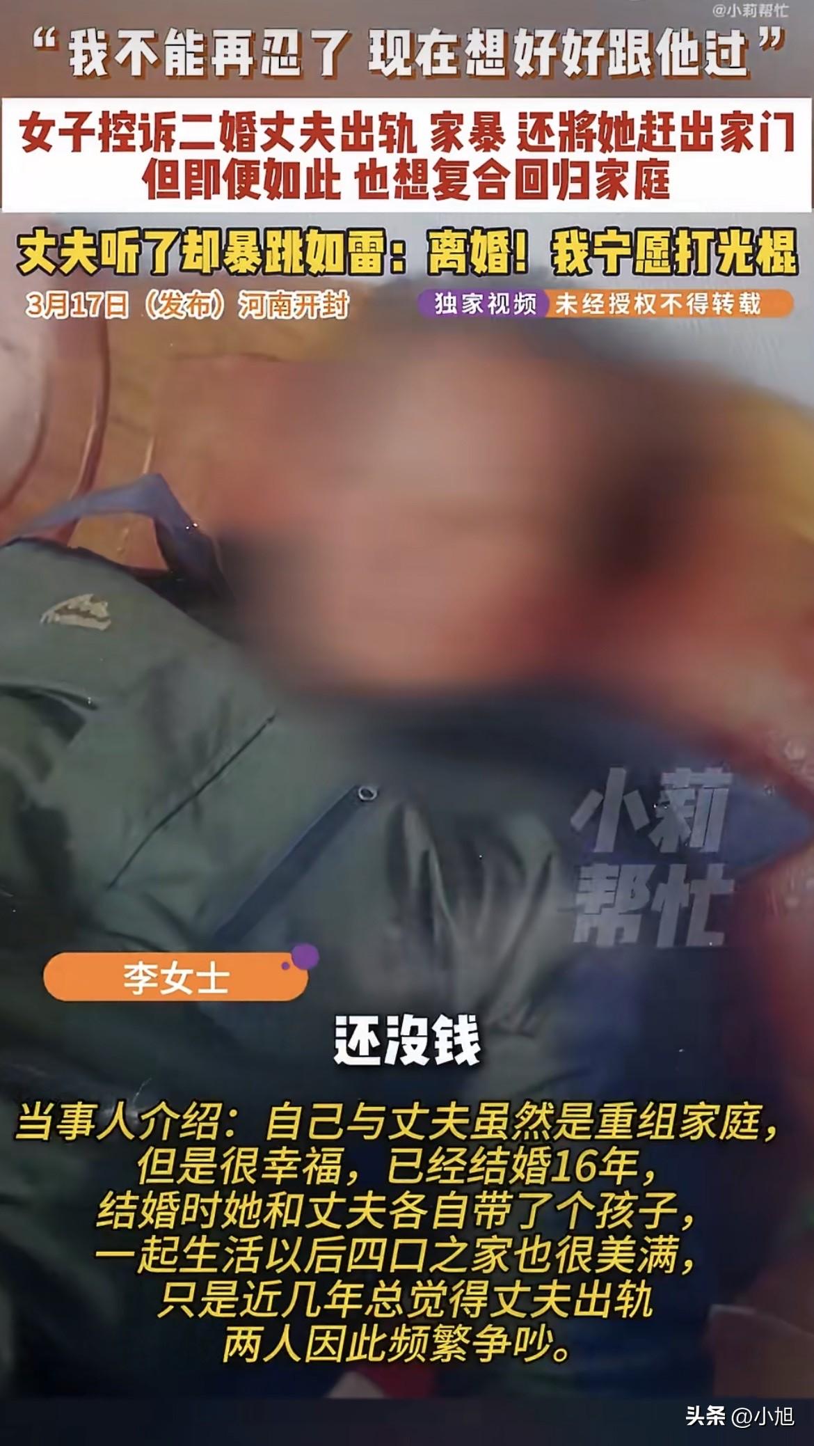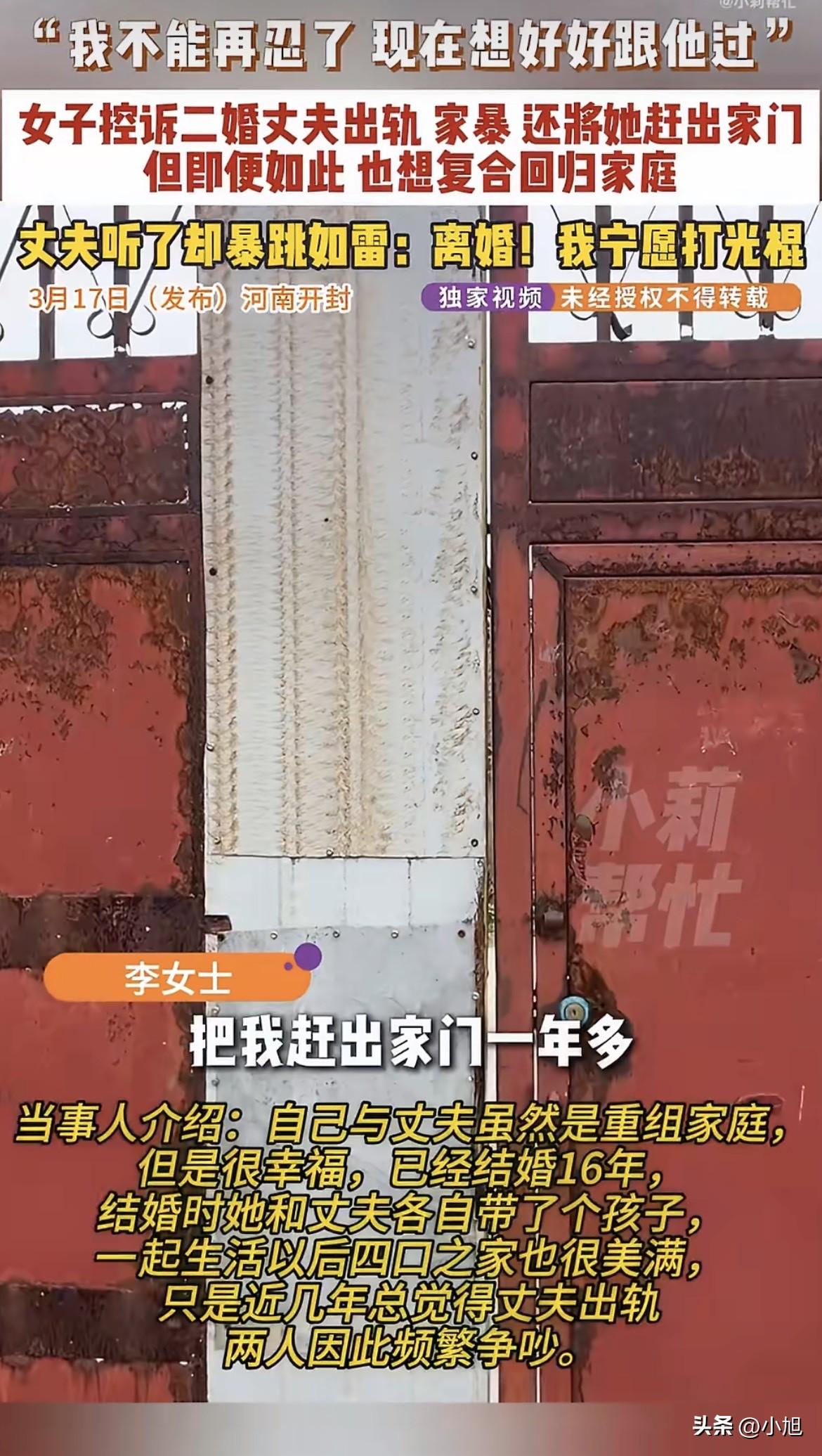 开封那个女人站在村口,对着镜头把丈夫数落了一顿。年龄大,长得不行,没钱,还出轨,打人,换锁把她赶出门。 记者问她到底想咋样,她说想回家,想跟这个男人好好过。 这话一出,旁边看热闹的都愣了。你都把他骂成这样了,还回去干啥? 女人低着头不吭声,手指头来回绞着衣角。 俩人结婚十六年,是凑到一块儿的。她带过来一个十几岁的儿子,丈夫带过来一个五六岁的闺女。头些年过得还行,她在家伺候老人孩子,男人出去打工挣钱,逢年过节回来,一大家子坐在院子里吃饭。 三四年前出了事。男人迷上刷短视频,跟个女网友聊得热乎。女人说那女的还打过电话,让她腾地方。 她说自己一直忍着,男人也认过错,说以后不联系了。可一年前又吵起来,男人动了手,把她撵出去,门锁也换了,到现在进不去家。 女人说儿子二十多了,婆婆去世那会儿儿子没回来奔丧,男人就一直生这个气。 她说这话的时候,嗓子眼儿哽了一下。“儿子现在20多了,我给他打电话他就是不回来,不听我的。” 记者跑去村里,男人不在家。村干部倒是在,说了几句话挺关键——两口子闹离婚主要是怀疑男人有外遇,但是没有出轨证据,全凭猜。 这话啥意思?就是女人说的那些事儿,拿不出真凭实据。 村干部还说,这夫妻俩的矛盾,可能还跟女人的儿子有关系。 后来记者打电话联系上男人了。男人在电话那头,话说得死硬。宁愿打光棍也不跟她过了。 男人说自己没出轨,没那些乱七八糟的事。继子结婚买房,他前前后后掏了十几万。 十几万。在开封农村,这钱得攒多少年。 结果呢?继子还是伸手要钱,不给就翻脸。最寒心的是啥?他出钱买的房,继子不让他住。一说这事,继子就撂话要去找亲爹。 他亲妈去世,继子连葬礼都没回来。 男人把这些事一件件说出来,电话那头的声音听着就是凉透了。他养了继子这么多年,掏心掏肺,换来的是白眼狼。 女人咋说?儿子就是不懂事。她还说一直记着丈夫的情,现在还想回来好好过日子。 这话听着更拧巴了。她记着丈夫的好,可她儿子干的那些事,她管过没?说过没? 村干部说下一步还要调解。但这事怎么调? 男人那边,钱花了,心凉了,连亲妈去世继子都不露面,这个坎过不去。 女人这边,口口声声说想回家,可她嘴里丈夫还是那个“年龄大长相一般还没钱”的人。这话听着,哪像是想回去过日子的? 网友留言说得挺直白:男的对继子都舍得花钱,真不是冷血那种人。也有人说:男的再委屈,动手那一下,道理就全没了。 可仔细琢磨,女人说的话里,有一个地方漏了馅。 她说丈夫出轨,拿不出证据。她说丈夫家暴,被赶出来一年了,这中间她在哪?干啥了?现在突然想回去,真是因为念着十六年的情分? 还是因为她那个二十多岁的儿子,已经不需要她管了? 重组家庭,最难的就是孩子。她儿子从十几岁跟着过来,到娶媳妇买房,男人掏了十几万。这份付出,换了谁都得记着。可她儿子不记,还拿去找亲爹这事戳人心窝子。 她夹在中间,从来没把儿子掰过来。现在儿子大了,成家了,不用她管了,她才想起来回头。 男人那句“宁愿打光棍”,说得硬气。可这话背后,是被伤透了。 一个男人,给继子花十几万娶媳妇,图啥?不就图一家人好好过。结果继子不让他住房,亲妈去世继子不露面,这日子还怎么过? 女人现在想回来,可她想过没有,那个家,还是她走时候的那个家吗? 门锁换了,人心也换了。 她站在村口说想回家的时候,心里到底在想什么?是念着十六年的情分,还是在外头转了一圈,发现没人接盘了? 没人知道。 只知道男人在电话那头,把话撂得死死的。宁愿打光棍,也不跟她过了。 这话说出来,十六年的日子,就算是到头了。 来源:河南广播电视台《小莉帮忙》相关报道