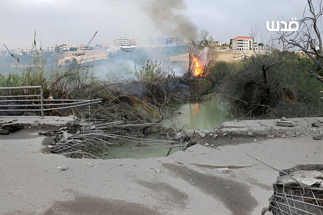 以色列占领军空军轰炸黎巴嫩南部利塔尼河上的卡西米亚大桥后。