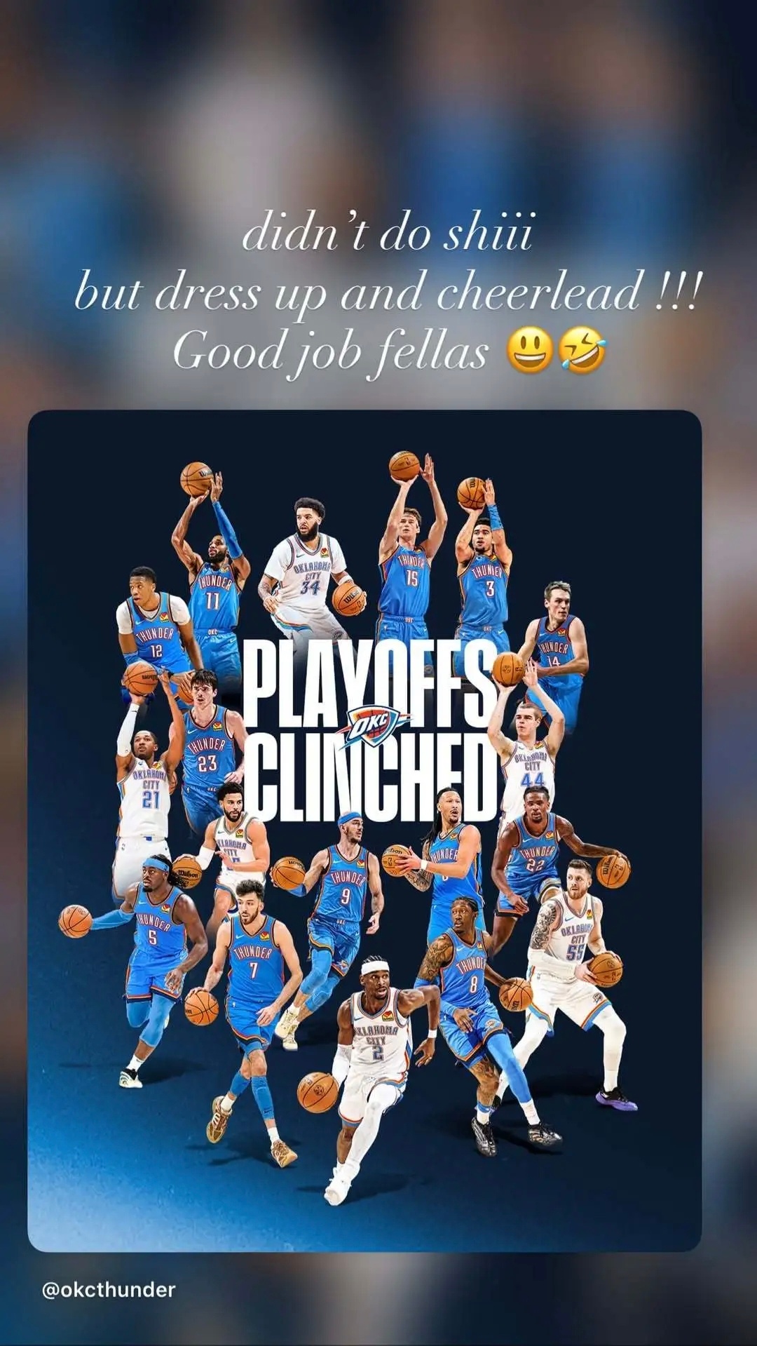 杰伦威廉姆斯更新社媒,图一转发锁定季后赛的帖子并自嘲:“啥正经事都没干,就搞搞穿搭在边上当啦啦队!!!干得漂亮啊兄弟们 😊🤣”