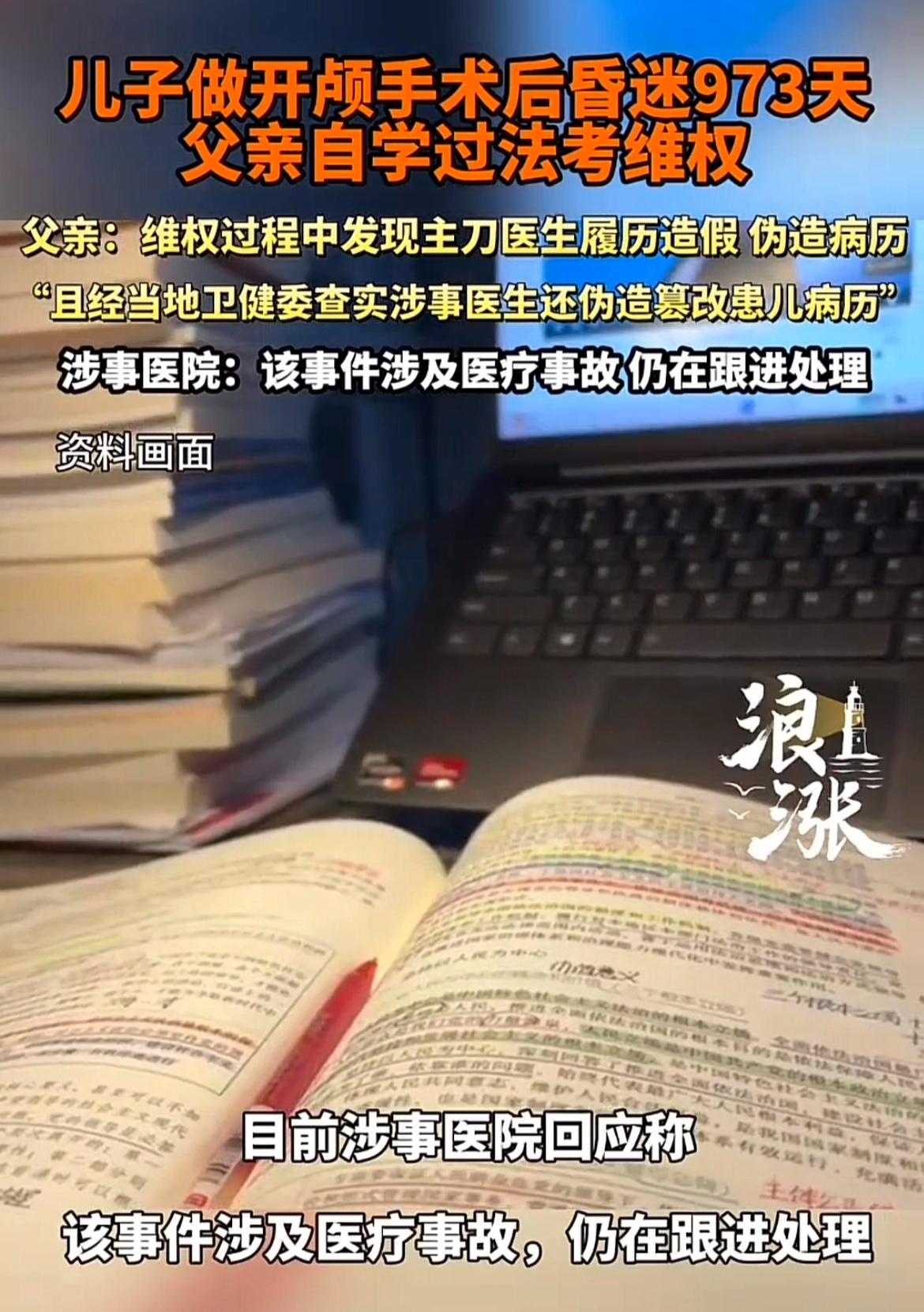 江苏无锡龚先生的遭遇太让人揪心了。16岁儿子2023年7月19日在无锡儿童医院脑部手术后,至今昏迷973天。维权时发现主刀医生履历造假,还伪造、篡改病历。 为了给儿子讨公道,毕业23年的龚先生一边照顾孩子,一边自学,竟通过了被称为“天下第一考”的法考。法考通过率低,他在高压下做到了,毅力惊人。他掌握专业法律工具,能更有效维权。家属明确不要赔偿,只要追究涉事人员刑事责任。目前医院称事件在处理中,希望真相早日大白,还龚先生一家一个公道。