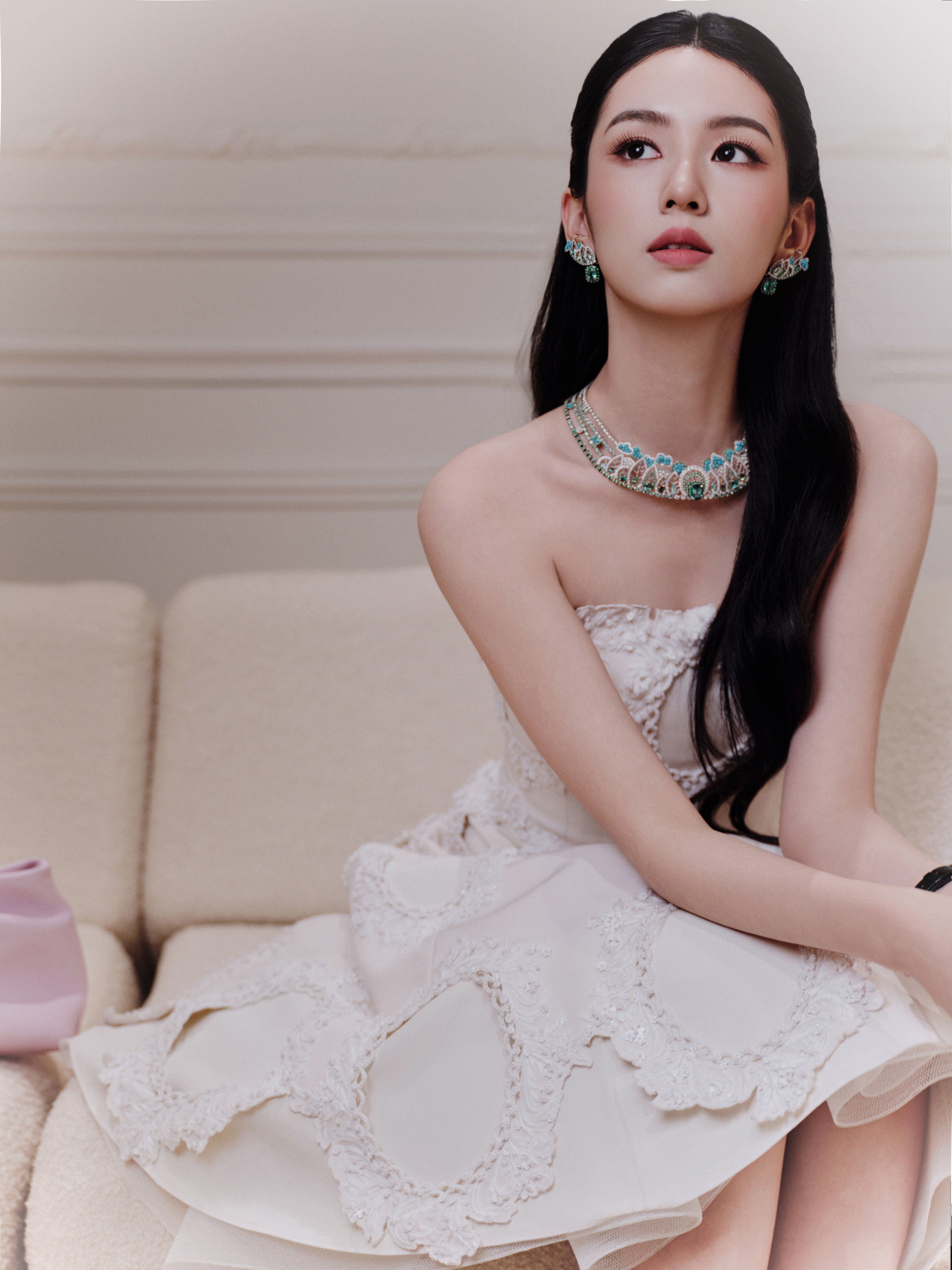 品牌大使周也今日出席迪奥高级珠宝活动,身着Dior 2026春夏系列抹胸刺绣裙装